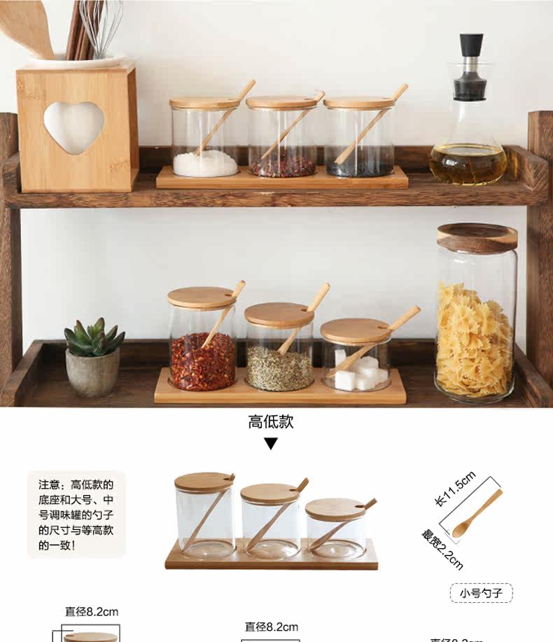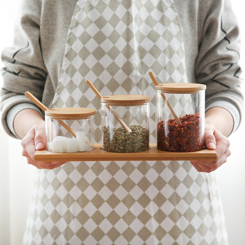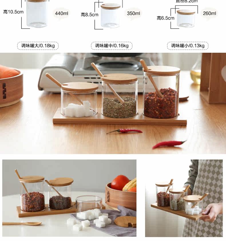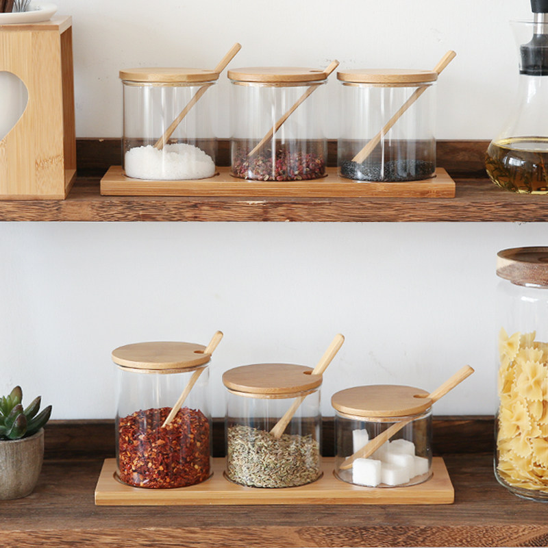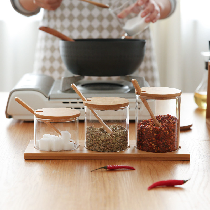 德利尔 Японский стиль стеклянный бамбук крышка кухонная приправа приправы приправы приливная влажность -Набор сахара и приправы с соляными танками