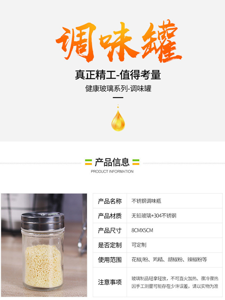 Влагия -надежный приправа для приправы кухонные принадлежности, предоставляя стеклянный соленый бак из нержавеющей стали приправы.