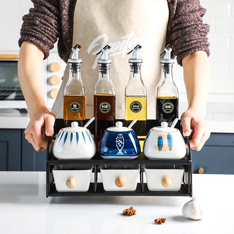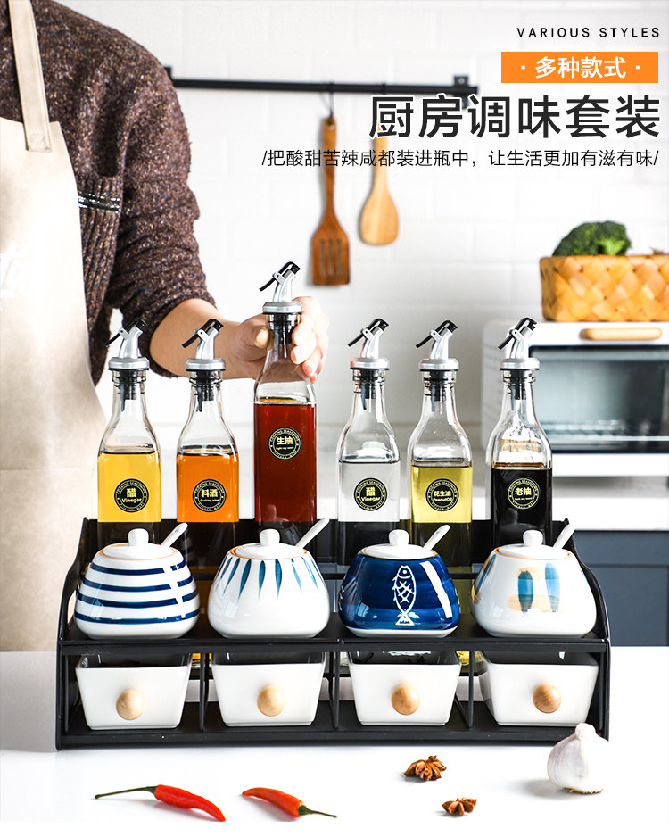 Sheli японский стиль керамический приправочный бак набор соляные танки MSG коробка домашняя кухня приправа для бутылочки бутылки уксуса бутылка