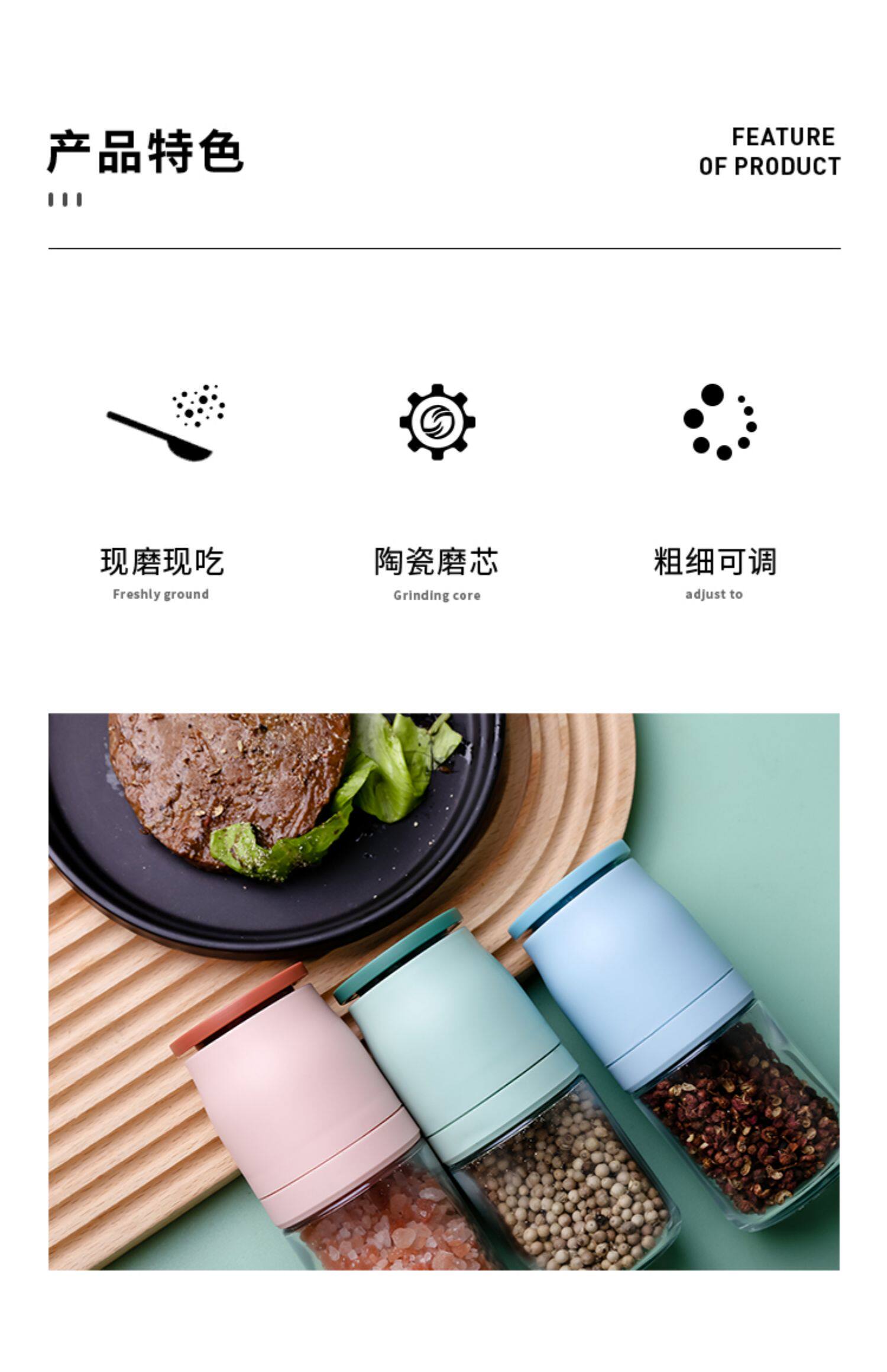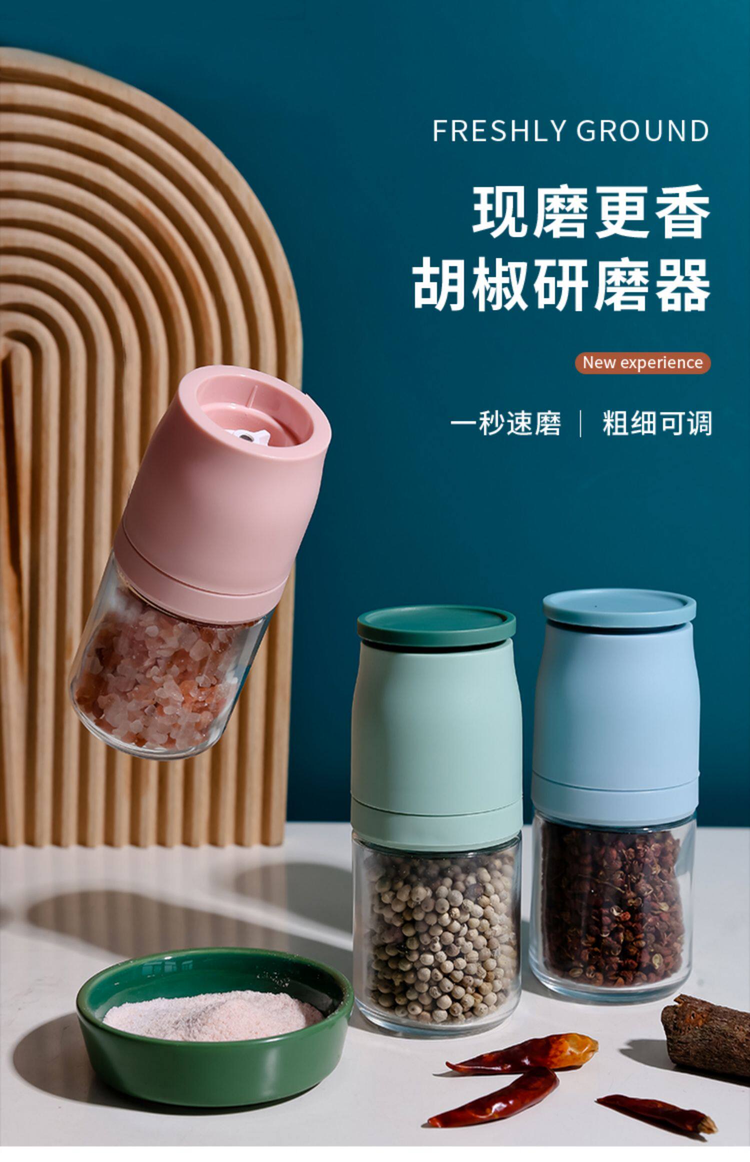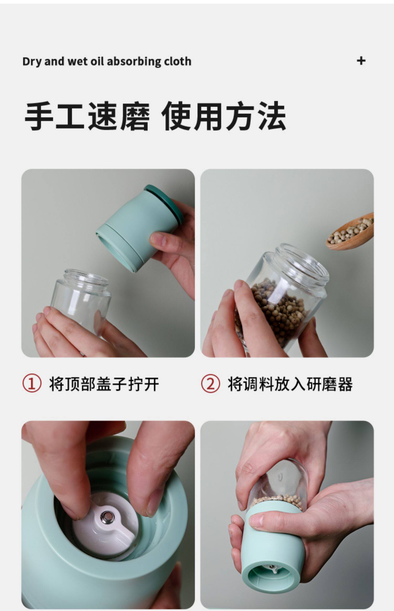 Японский измельчитель, кунжутное масло, стеклянная морская соль, перец Сычуань