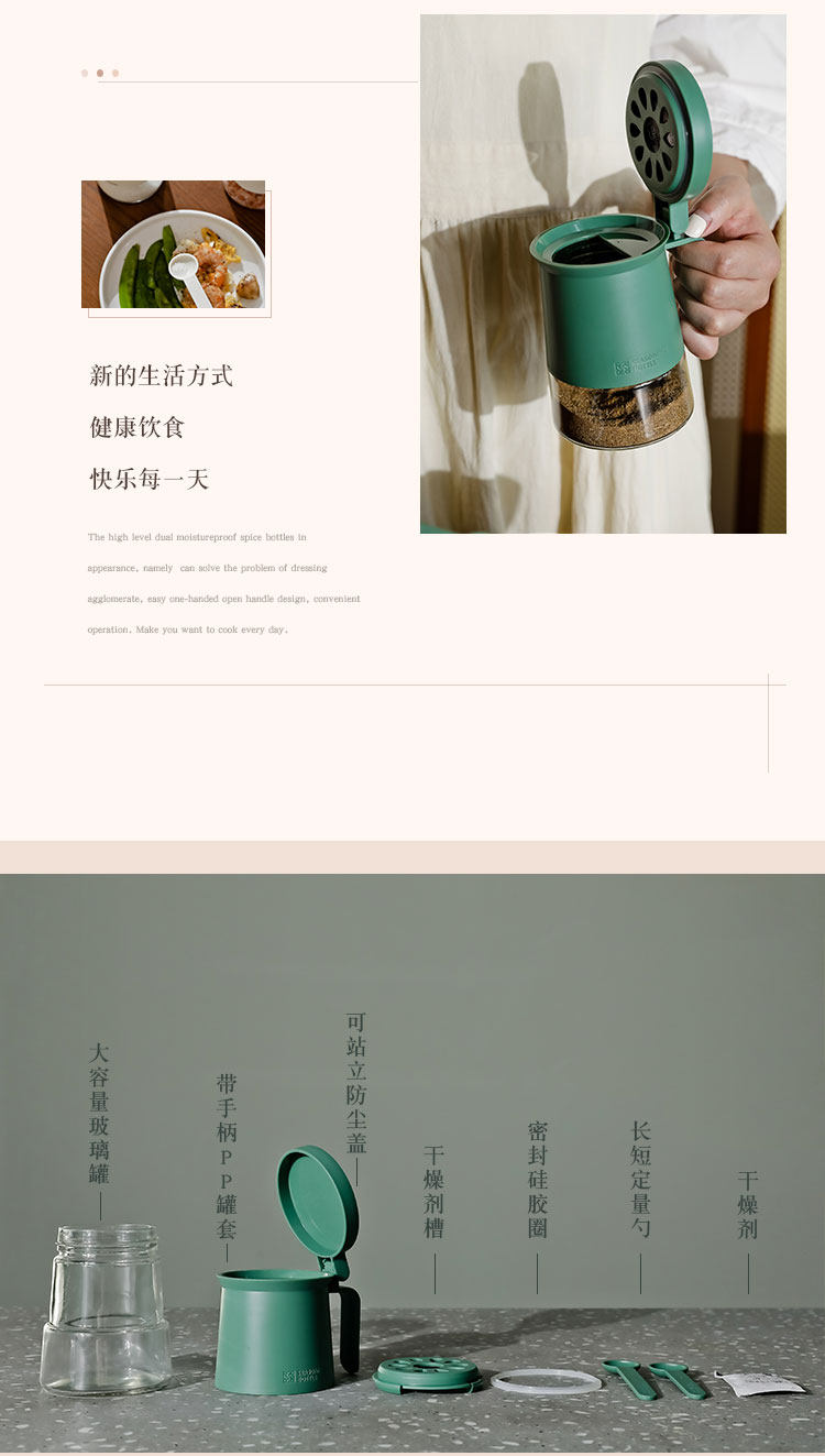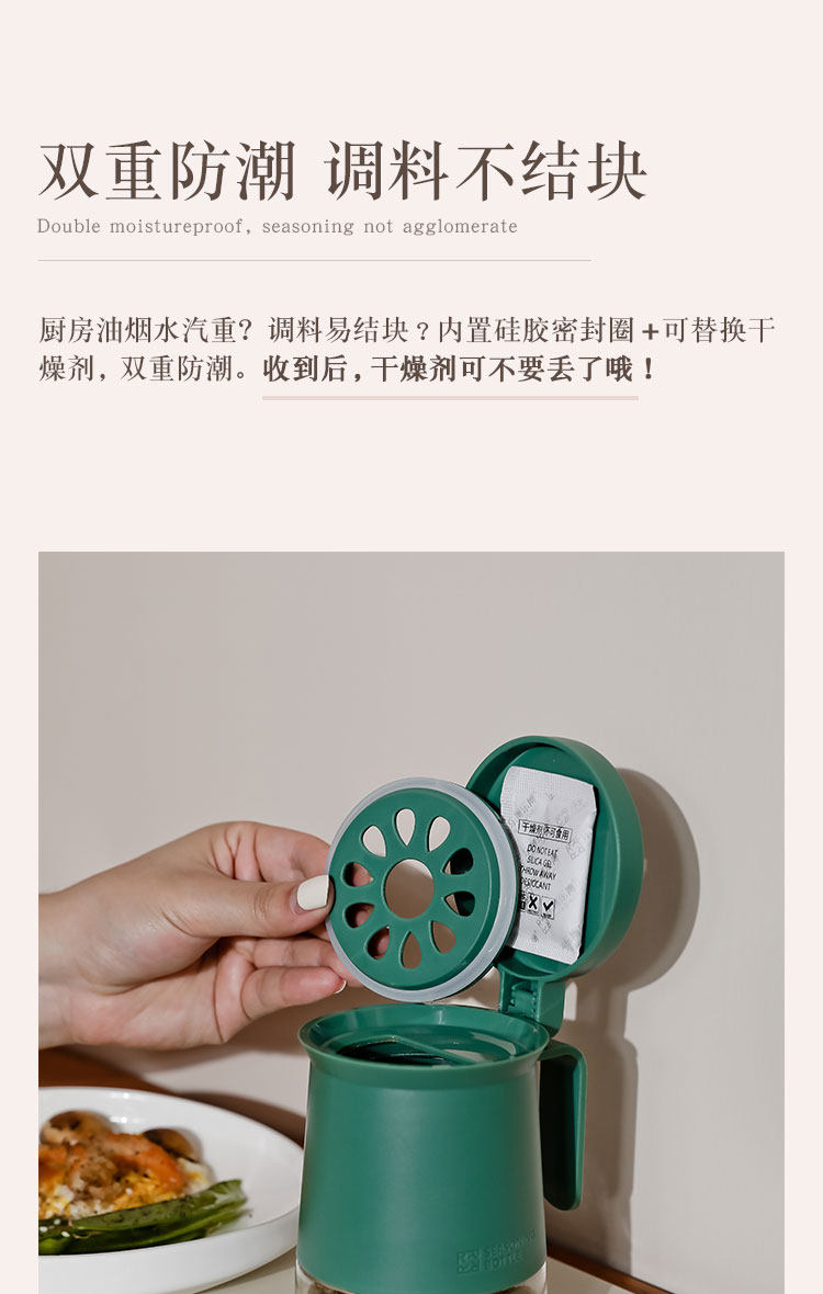 Двойная уплотнявая влажность -надежная приправа для приправы для приправы на кухнях может управлять соленой бутылкой домашний набор куриная эссенция соляная танк с ложкой