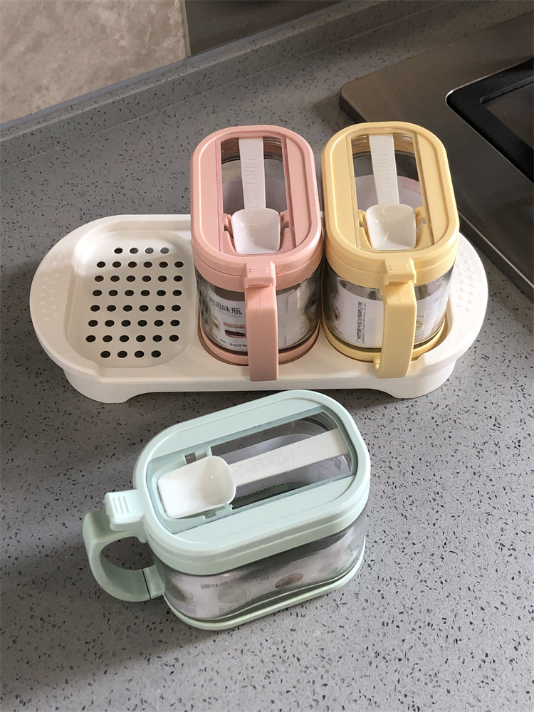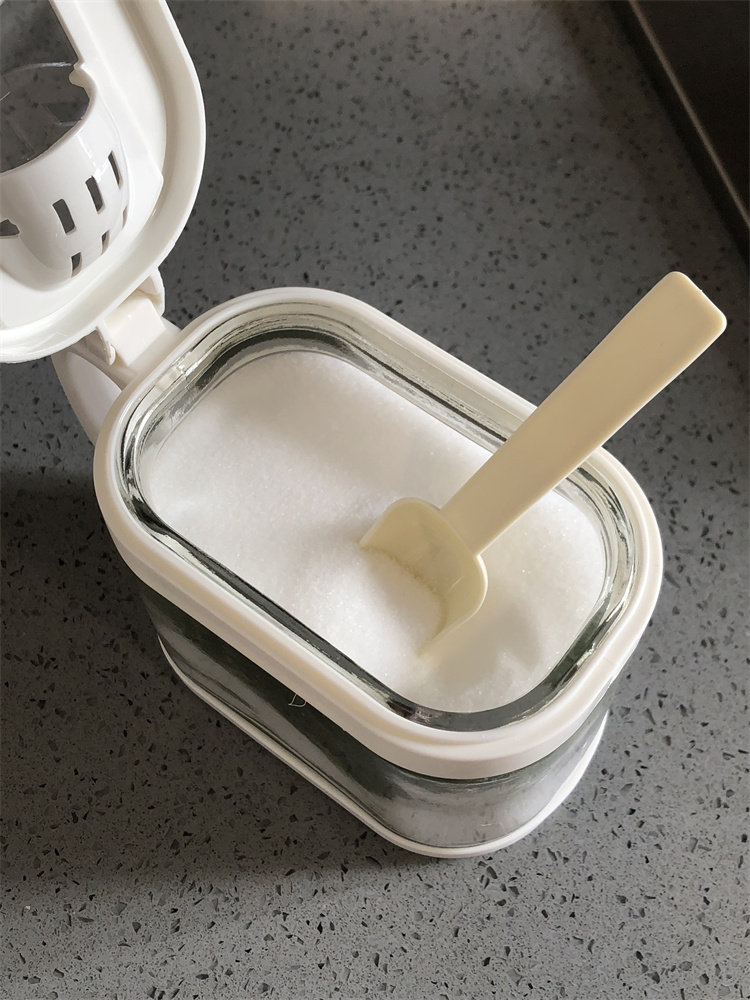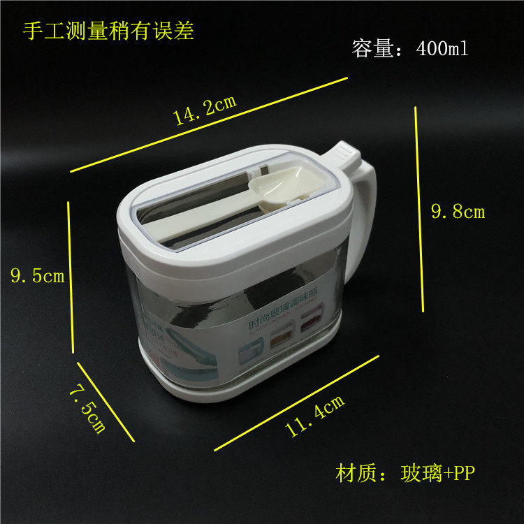 振兴 Бутылка для приправ, стеклянная солонка, коробка для приправ, 400 мл, прямоугольная бутылка из кукурузного крахмала с ручкой и ложкой, подставка для ароматизатора, бутылка для приправы