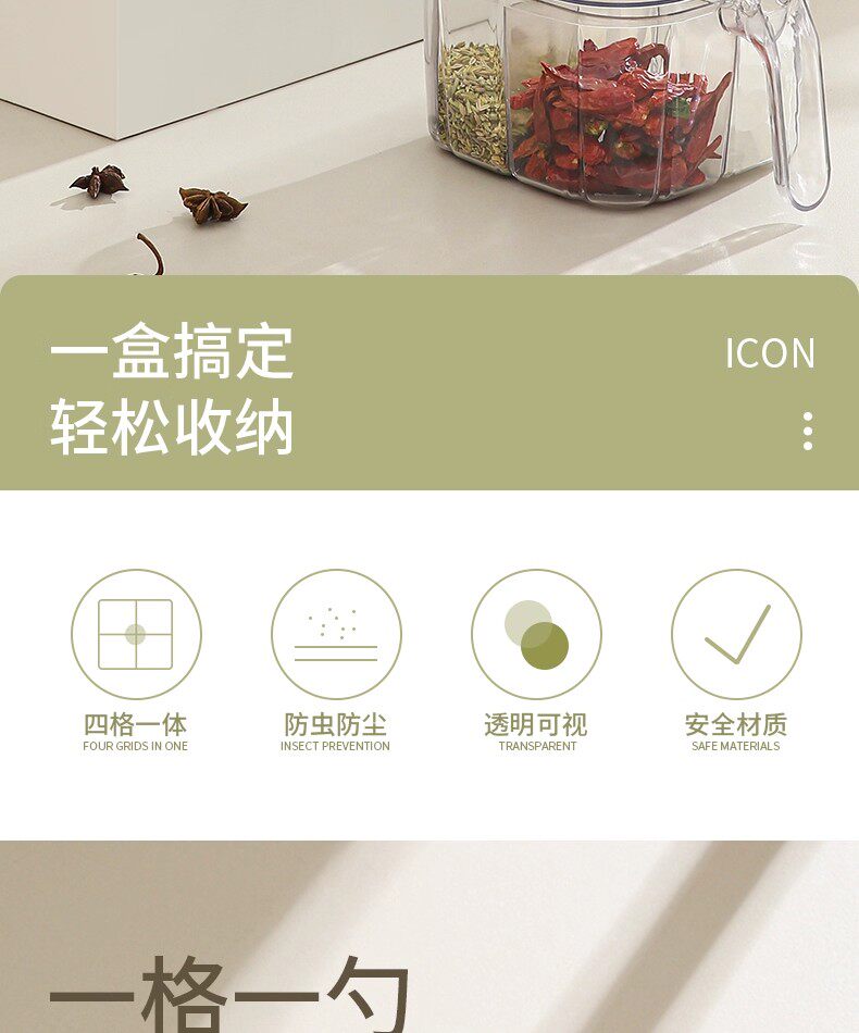 Коробка для приправ, бытовая кухонная банка для приправ, комбинированный набор, цельный многосеточный флакон для соли, глутамата натрия и перца, бутылка для приправы для хранения