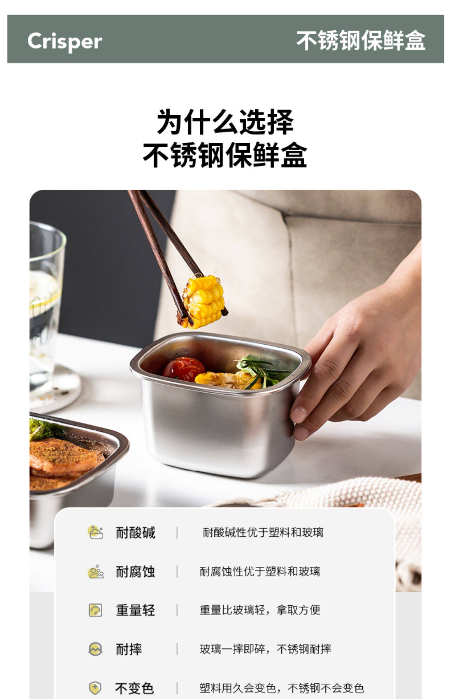 摩登主妇 Fresh Box Holrigrator Special Food Grade Box 304 Крышка ремня из нержавеющей стали.