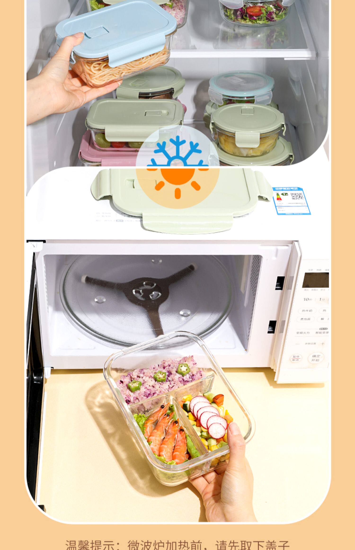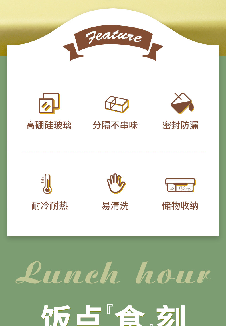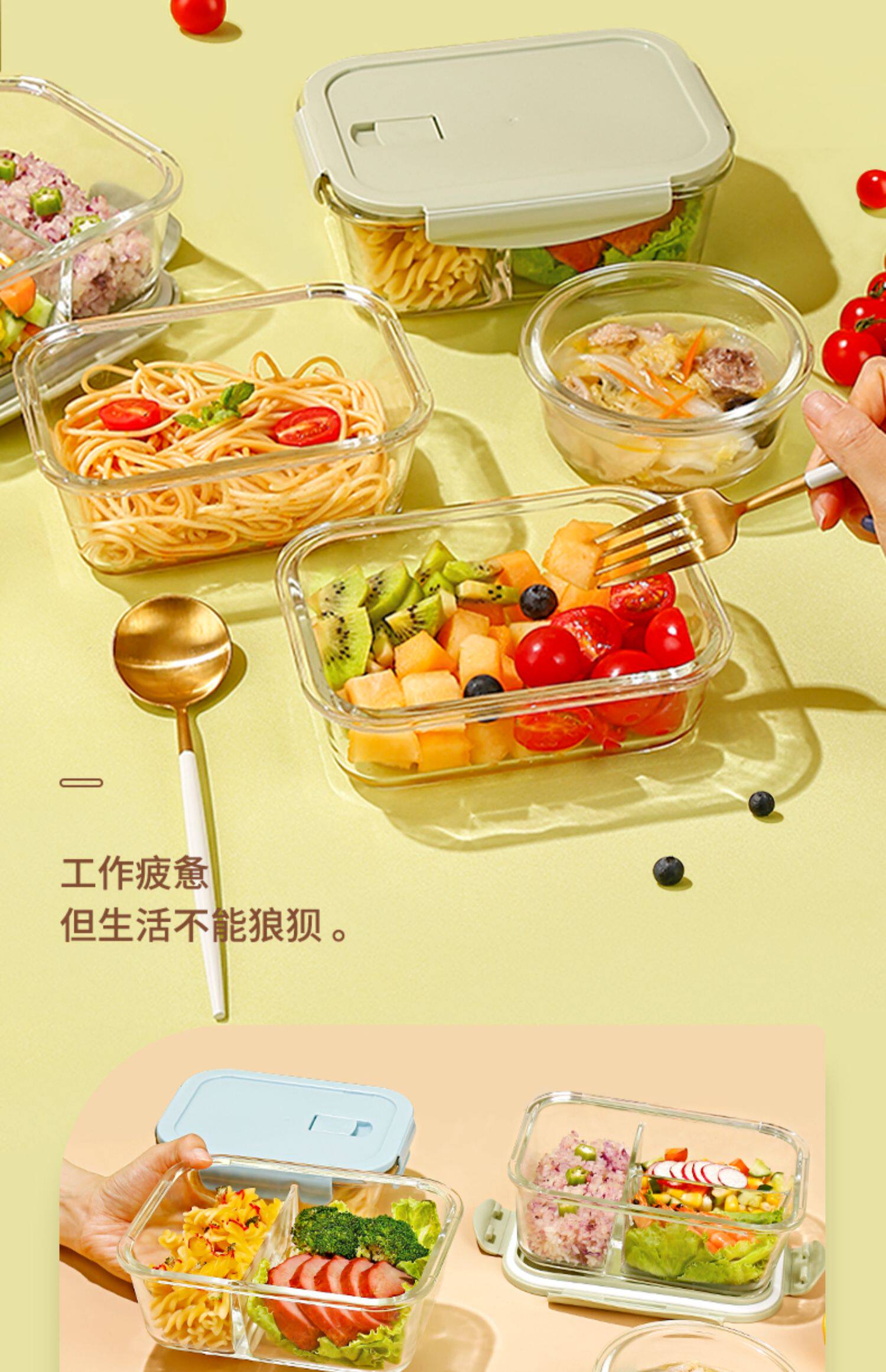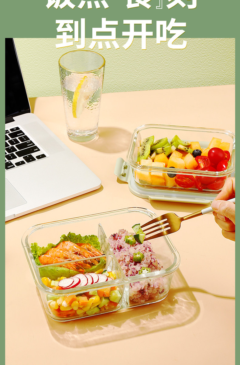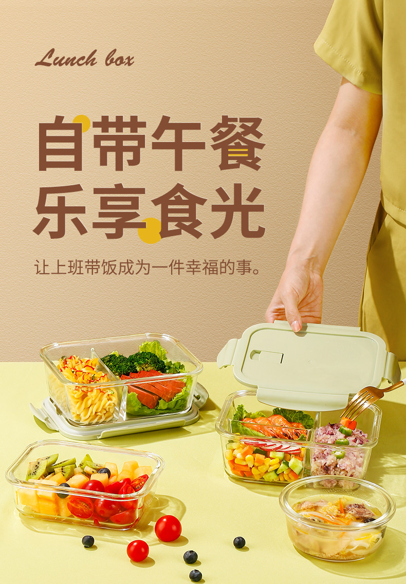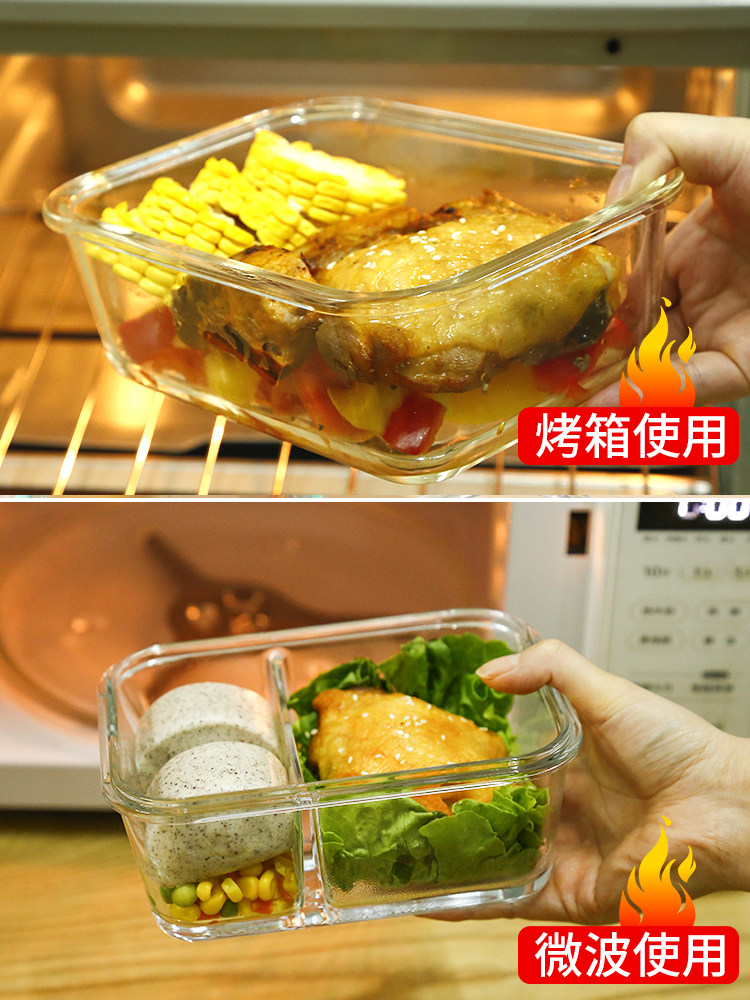 Стеклянная ланч -коробка Микроволновая печь, отопление, специальная миска офисных работников с рисовыми ланч -коробками, крышка, отделенная коробка Bento Fresh Box