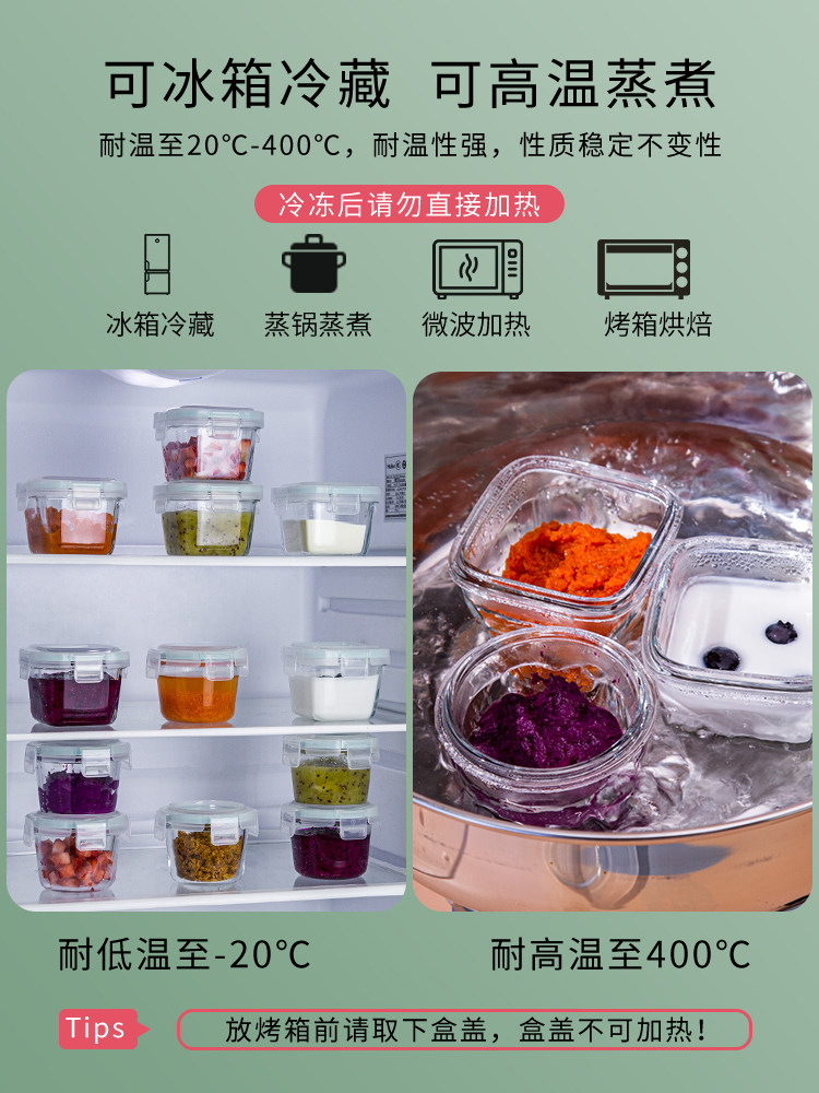 Детский стеклянный ланч-бокс для прикорма, мини-бокс, контейнер для хранения, можно готовить на пару