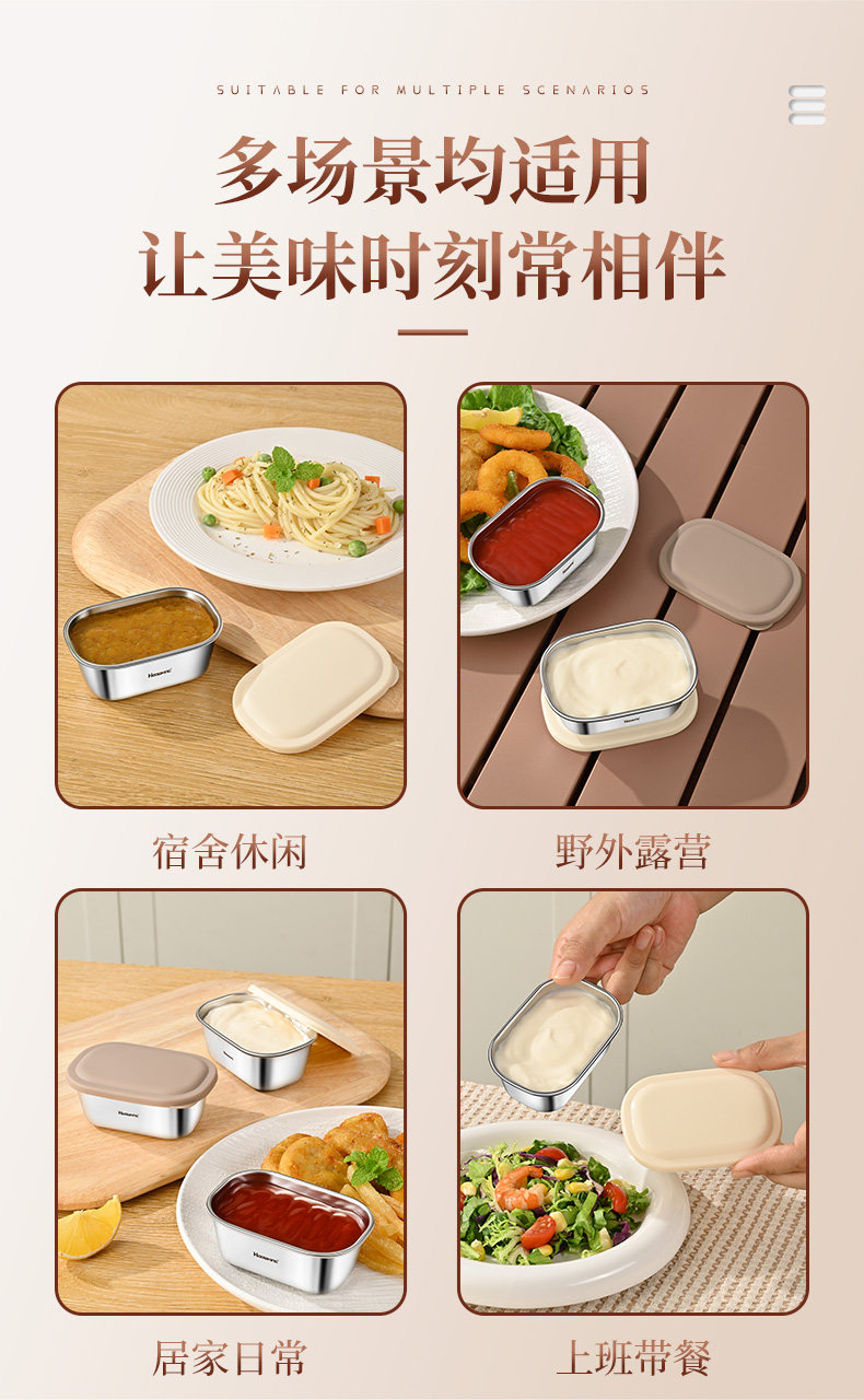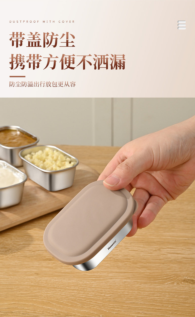 Мини-дип-бокс из нержавеющей стали 304 с откидной крышкой, томатная заправка для салата, портативная герметичная коробка для хранения свежих приправ на открытом воздухе