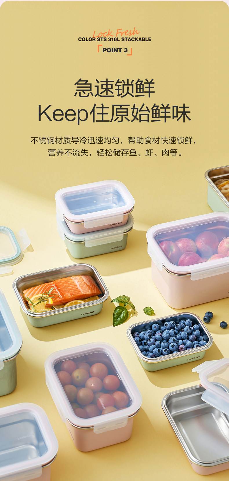 Замок замок Fresh Box 316 из нержавеющей стали фрукты Bento коробка ланч коробка пищевые холодильники для хранения морозильной камеры