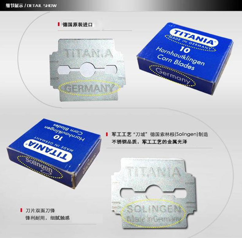 TITANIA/泰雅 Импортное прочное лезвие из нержавеющей стали, Германия, 10 штук
