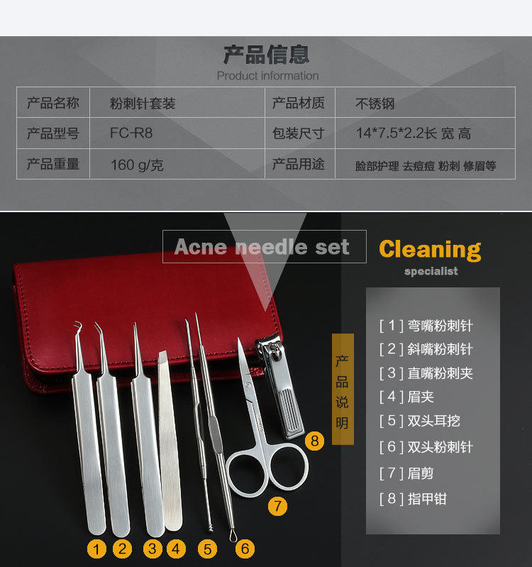 Косметический комплект из нержавеющей стали от черных точек, пинцет, скрывает прыщи