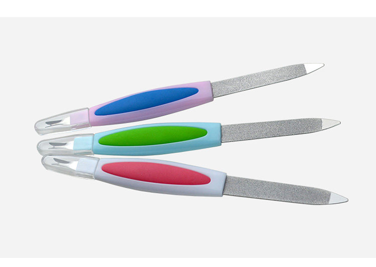 Два -два -функциональные ногти Ким да Рими упали на мертвую кожу вилки из нержавеющей стали, отдаваемая ножом.
