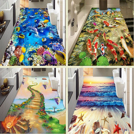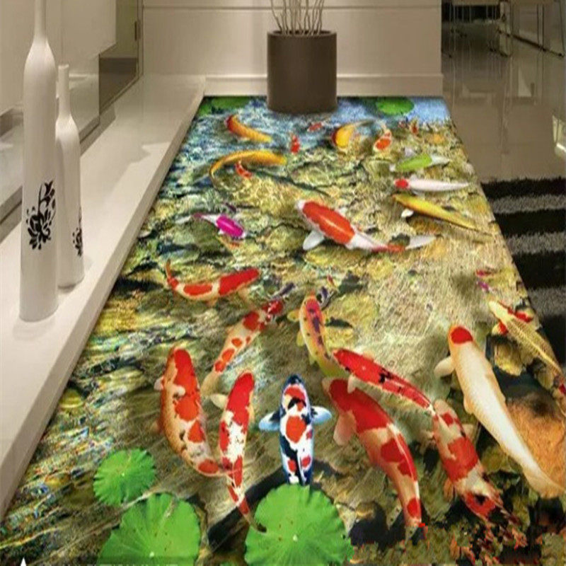 Новые трехмерные трехмерные наклейки нарисуйте подушку ковров, маленький ручей, лотос карп ванная комната гостиная спальня