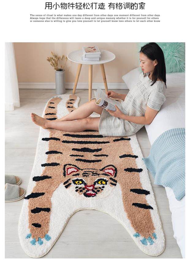 Легкая роскошная спальня ковровая кровать рядом с милым тигровым животным моделирует сеть красная гостиная подушка балкон.