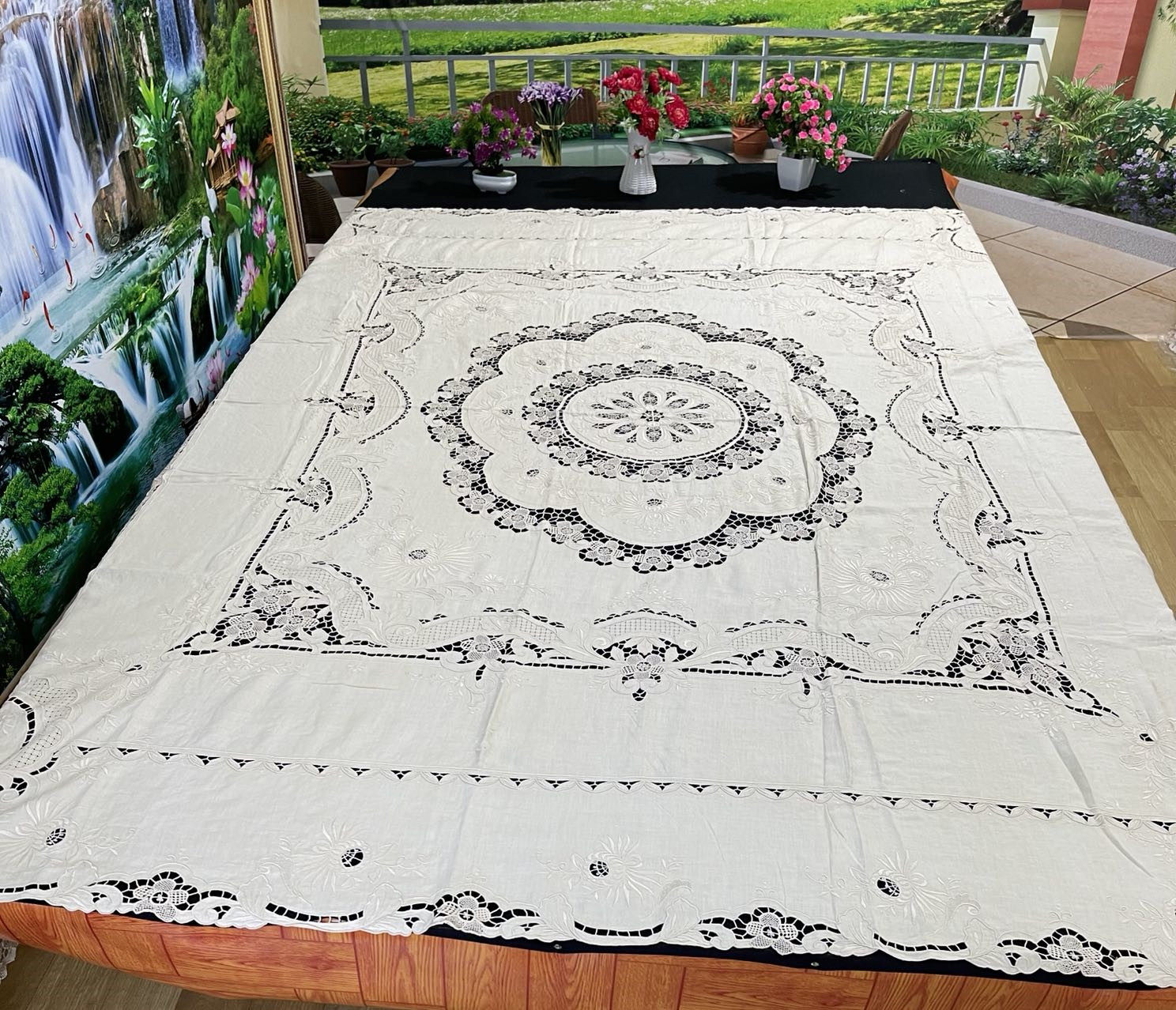 Вышитый сапфир с чистой рукой, Сяшан Ванли Ван шелк 5002 Природа Прямоугольная скатерть