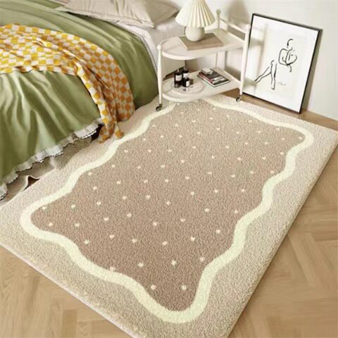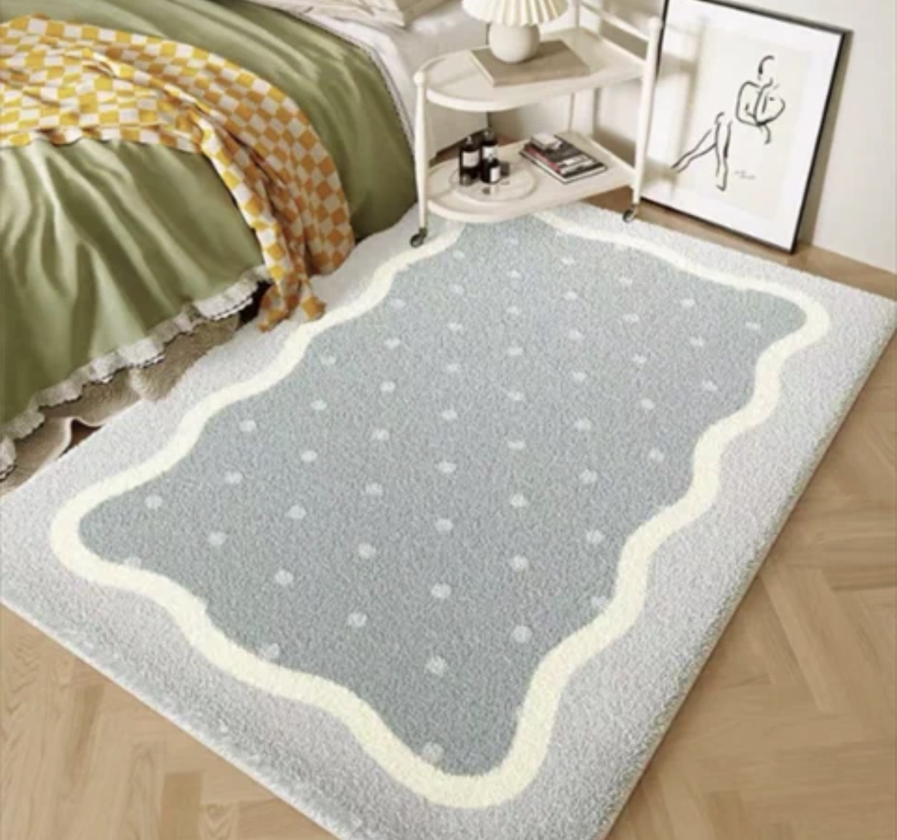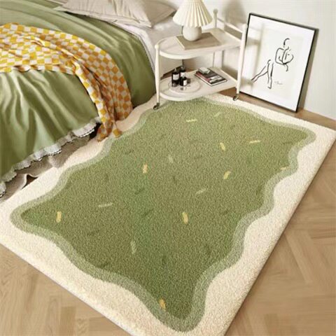 Кремовый зеленый ковер для кровати с сидением из искусственного меха