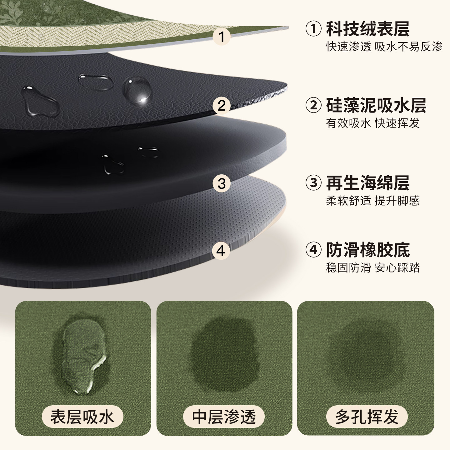 - 40*60 см [водопоглощающий, нескользящий, удобный для ног]