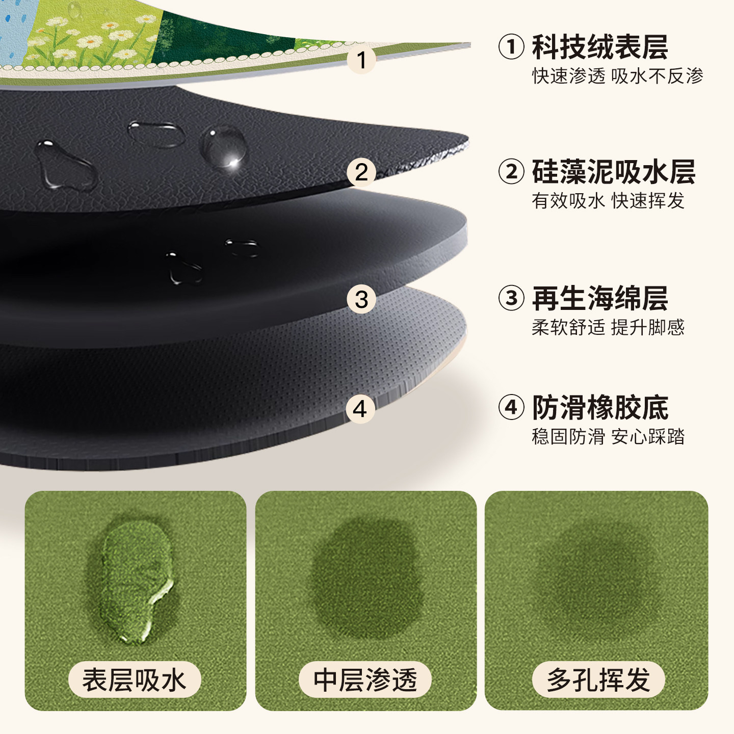 - 40*60 см [водопоглощающий, нескользящий, экологически чистый и без запаха]