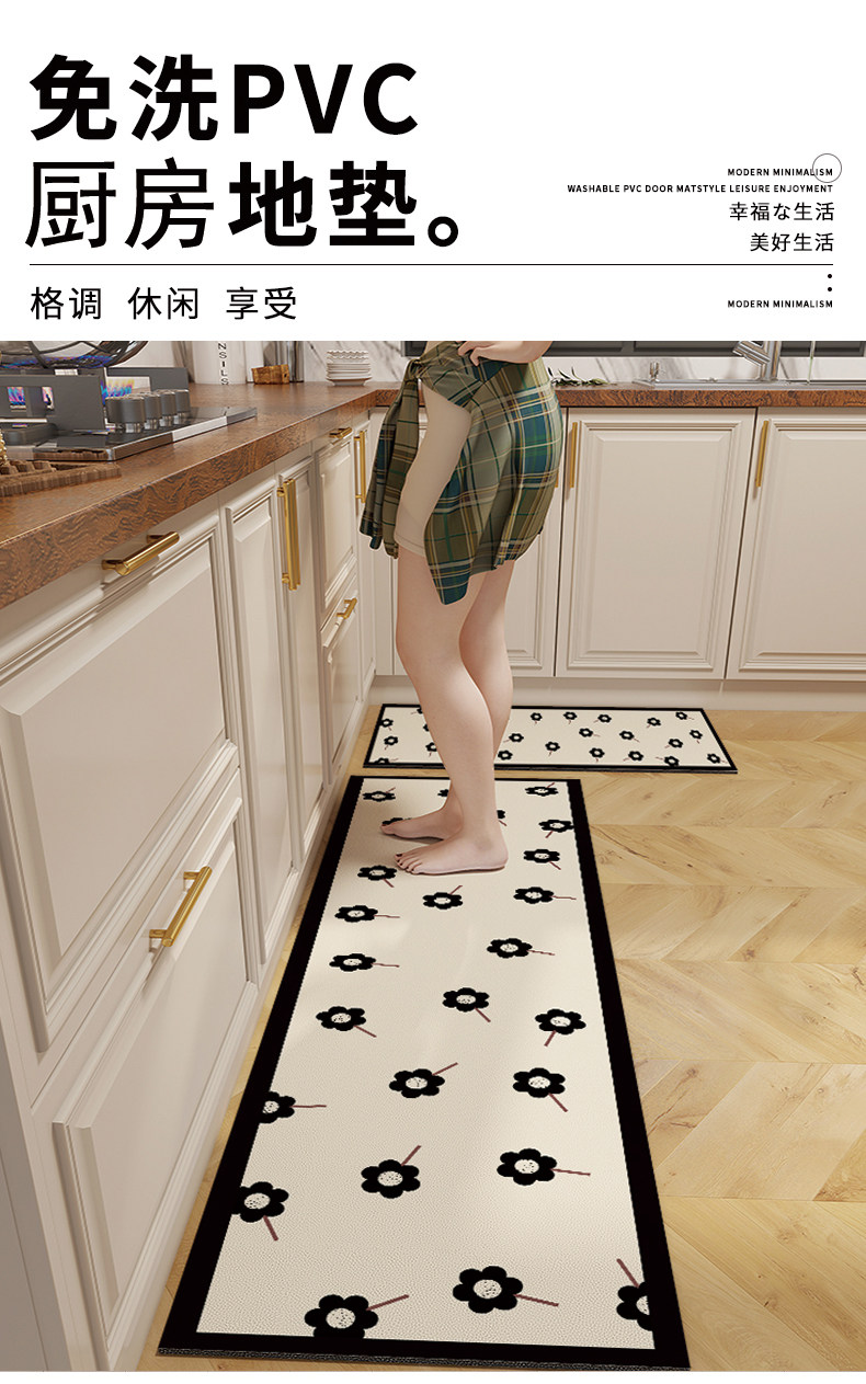 2024 новые кухонные коврики, легкие роскошные длинные коврики из искусственной кожи, водонепроницаемые и маслостойкие, не стираемые, кожаные, нескользящие и грязеотталкивающие коврики для ног
