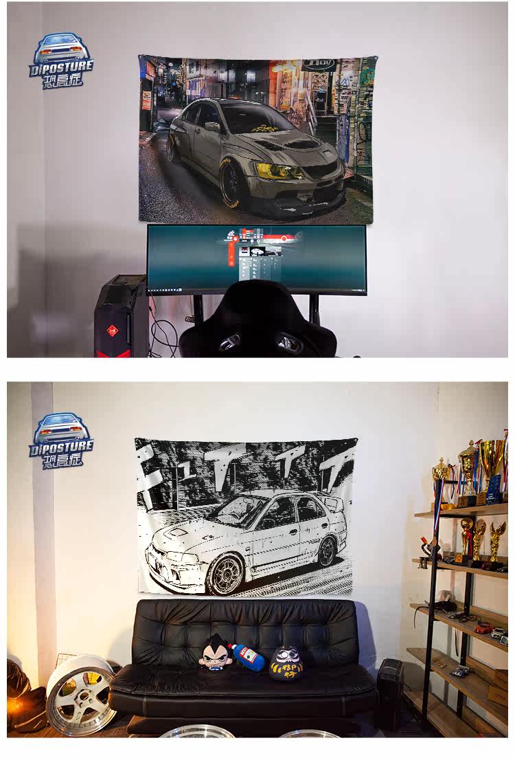 Подвесной холст EVO периферийные устройства для киберспорта, общежития, спальни, прикроватная тумбочка, гоночный спортивный автомобиль JDM, декоративный плакат, фон, подвесное тканевое настенное одеяло