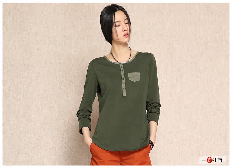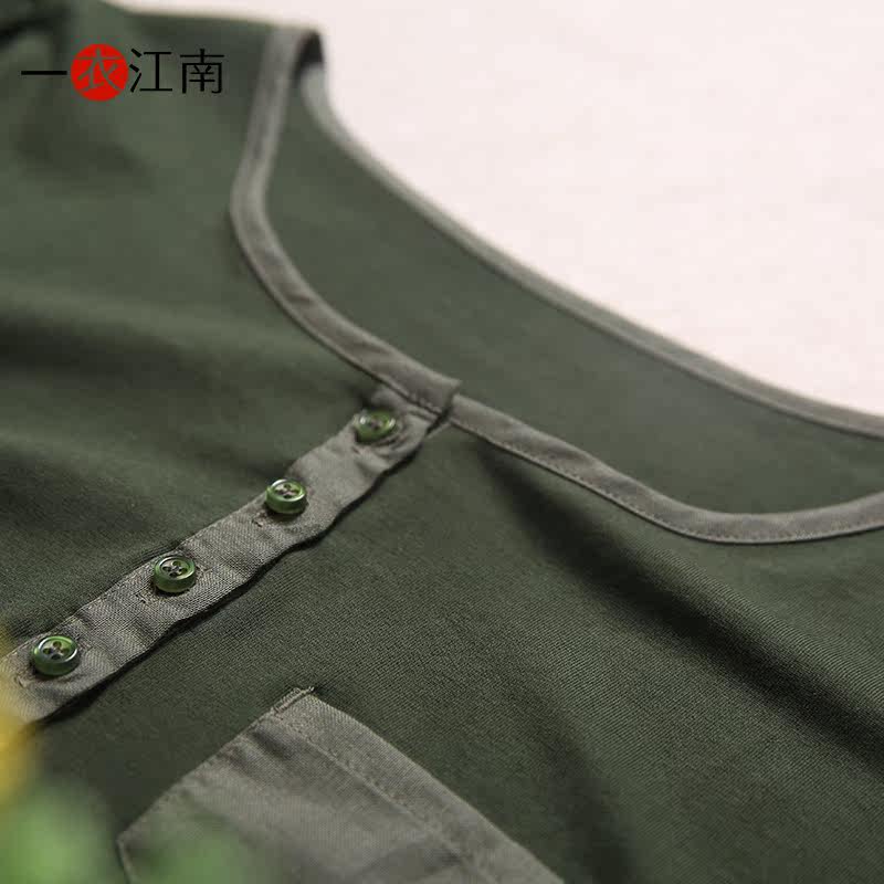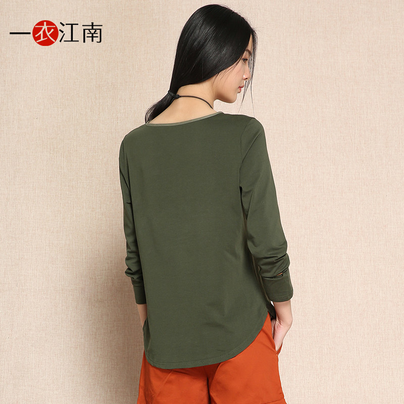 一衣江南 Весенняя хлопковая футболка, длинный лонгслив, 2022, средней длины