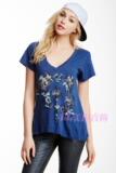 Wildfox Женский синий отпечаток V -neck Short -sleeed