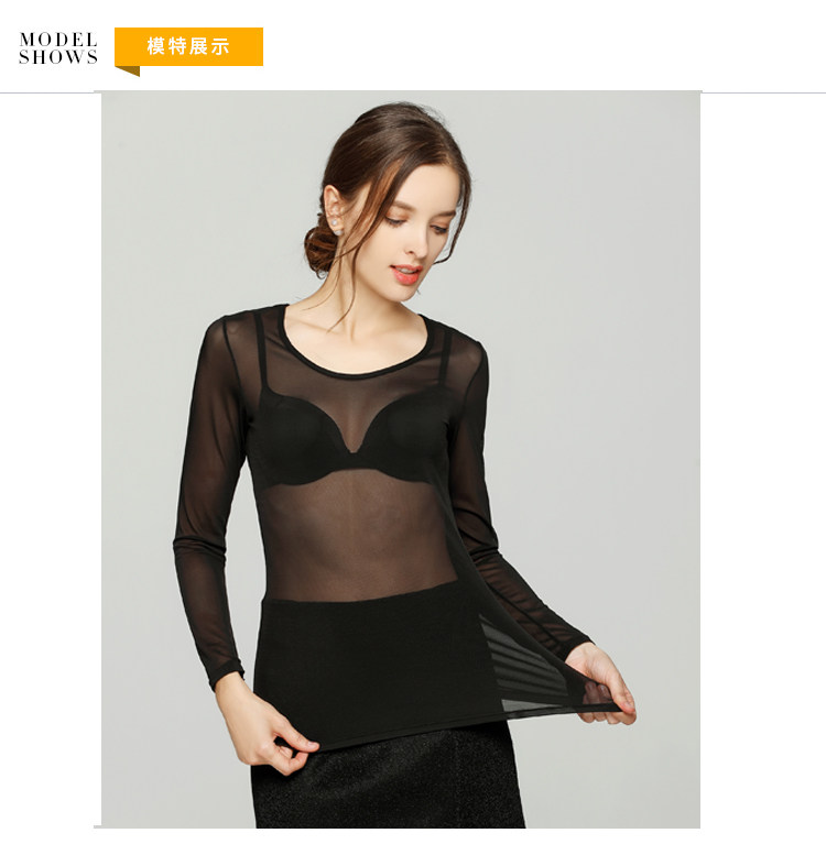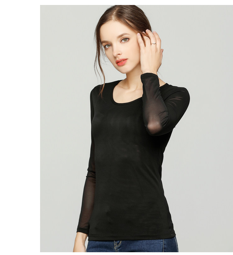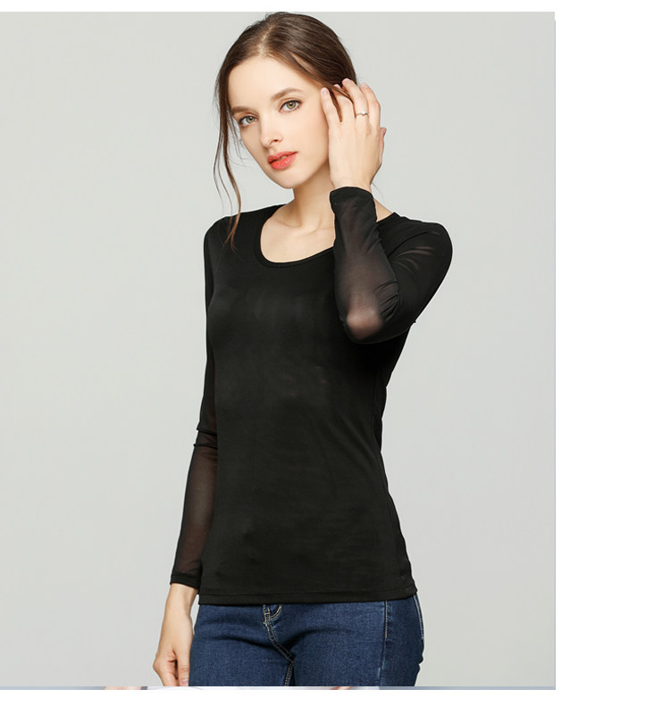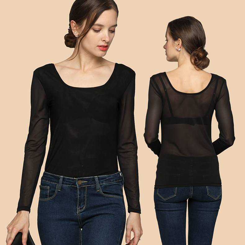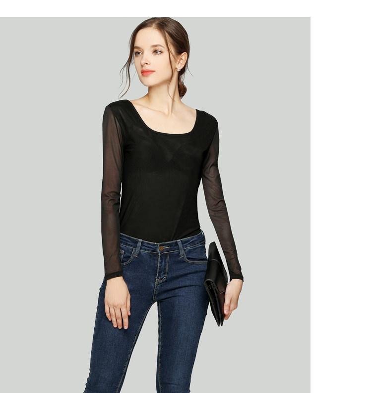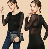 Ультратонкий кружевной шифоновый лонгслив, в обтяжку
