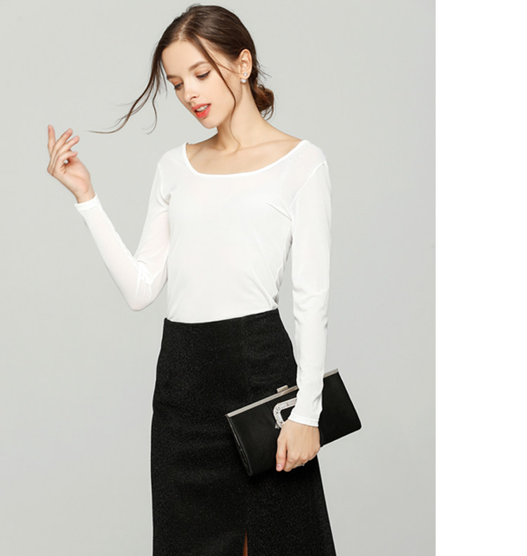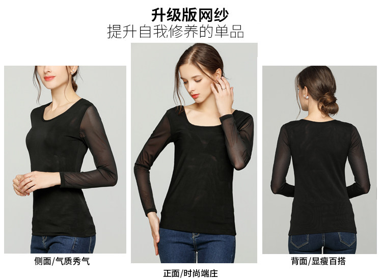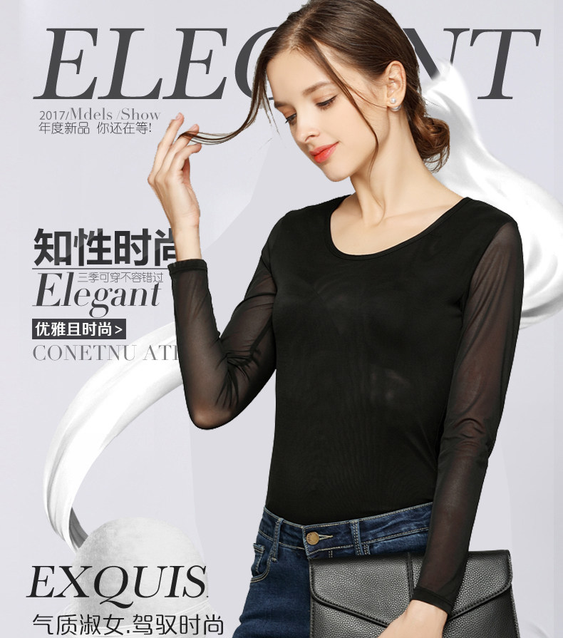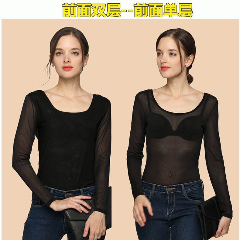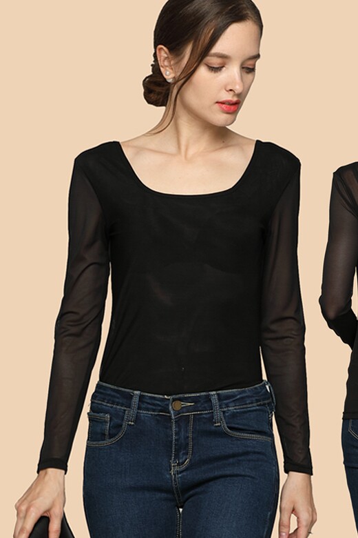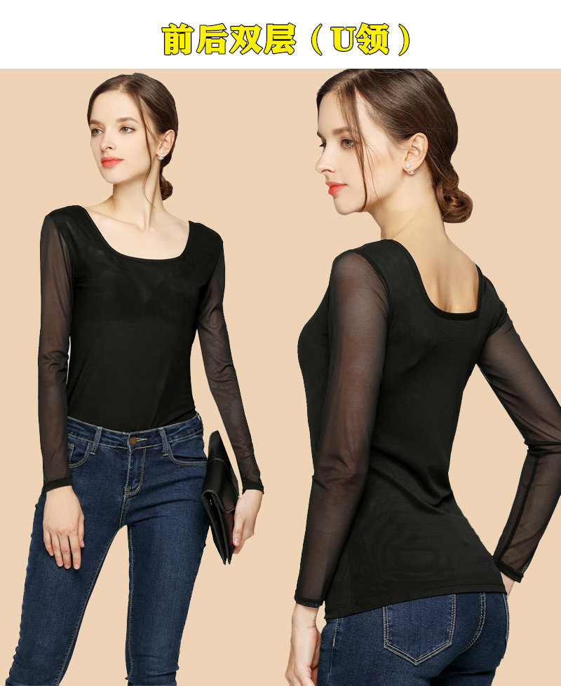Ультратонкий кружевной шифоновый лонгслив, в обтяжку