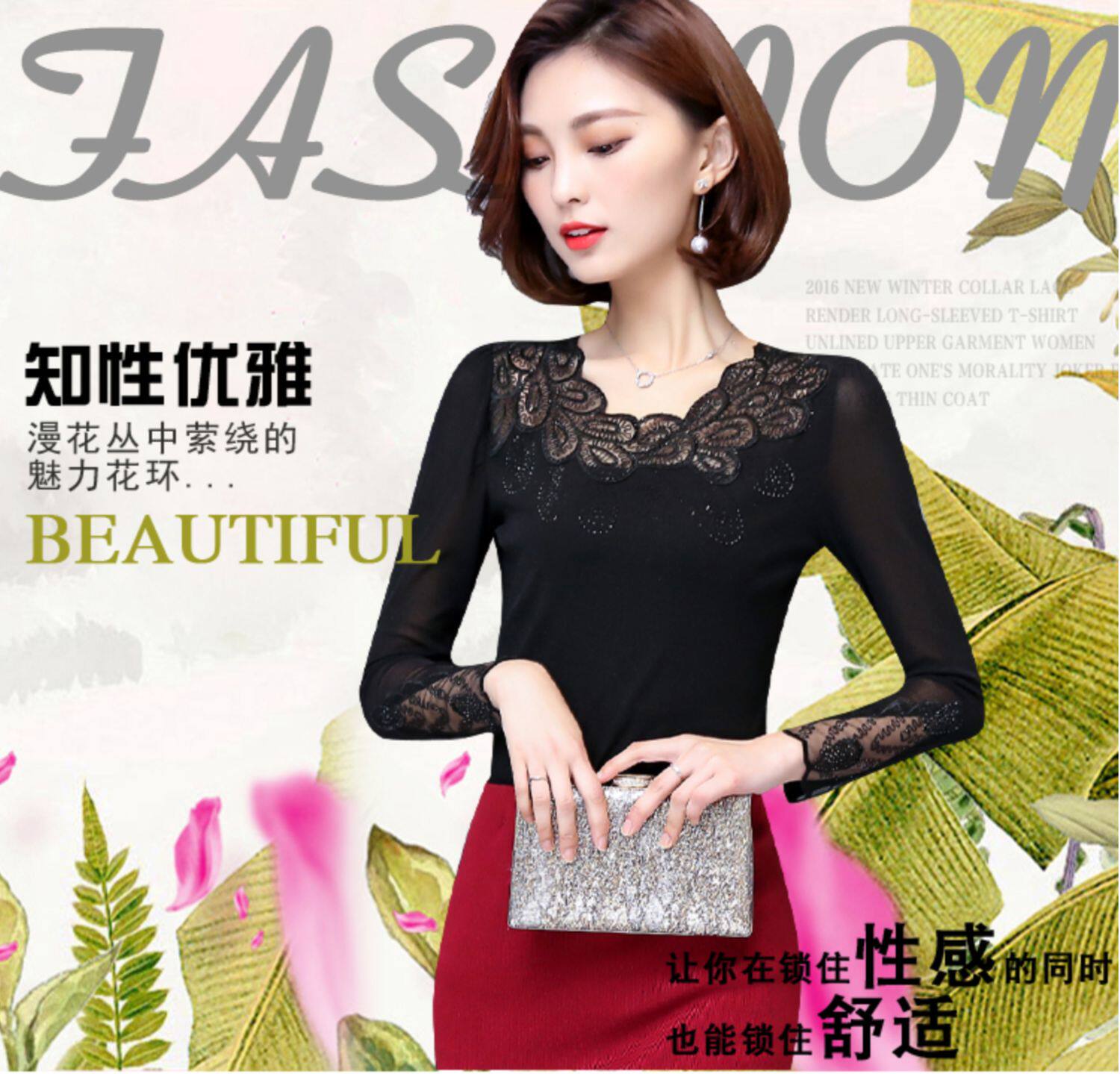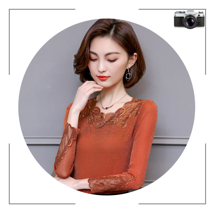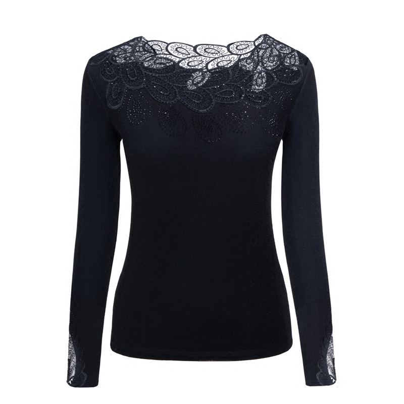 Кружевной шелковый приятный телу тонкий лонгслив, 2022, в западном стиле
