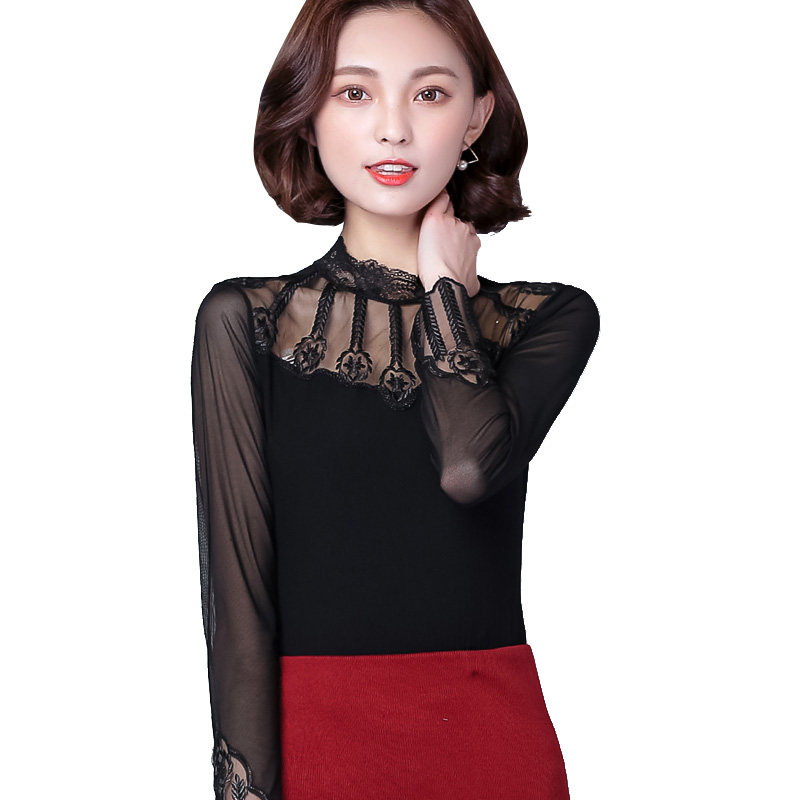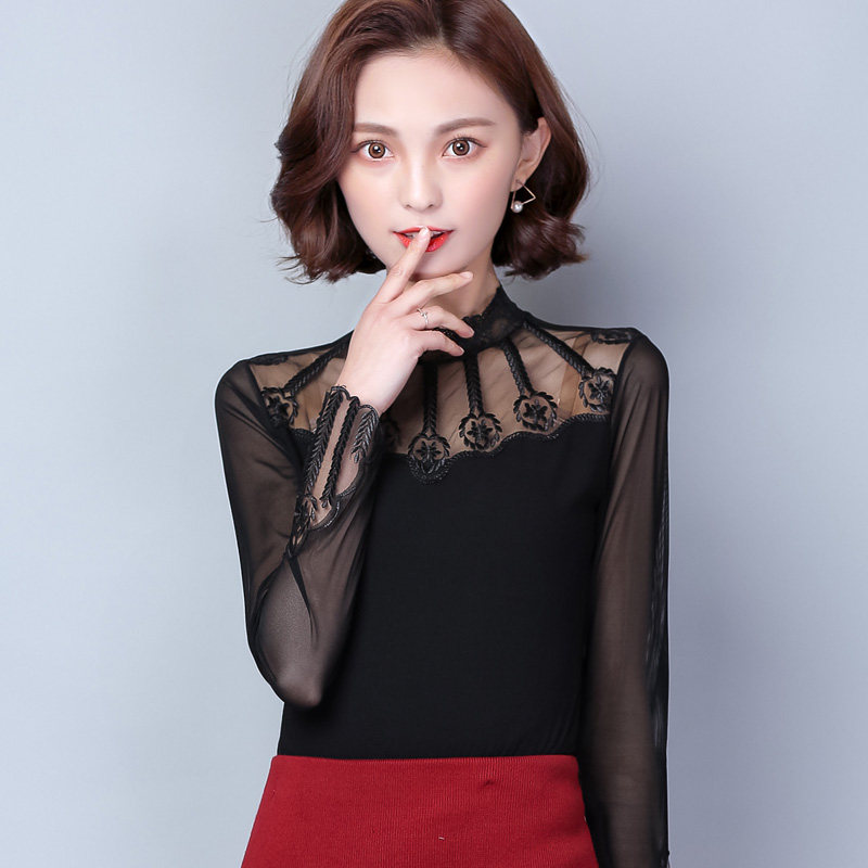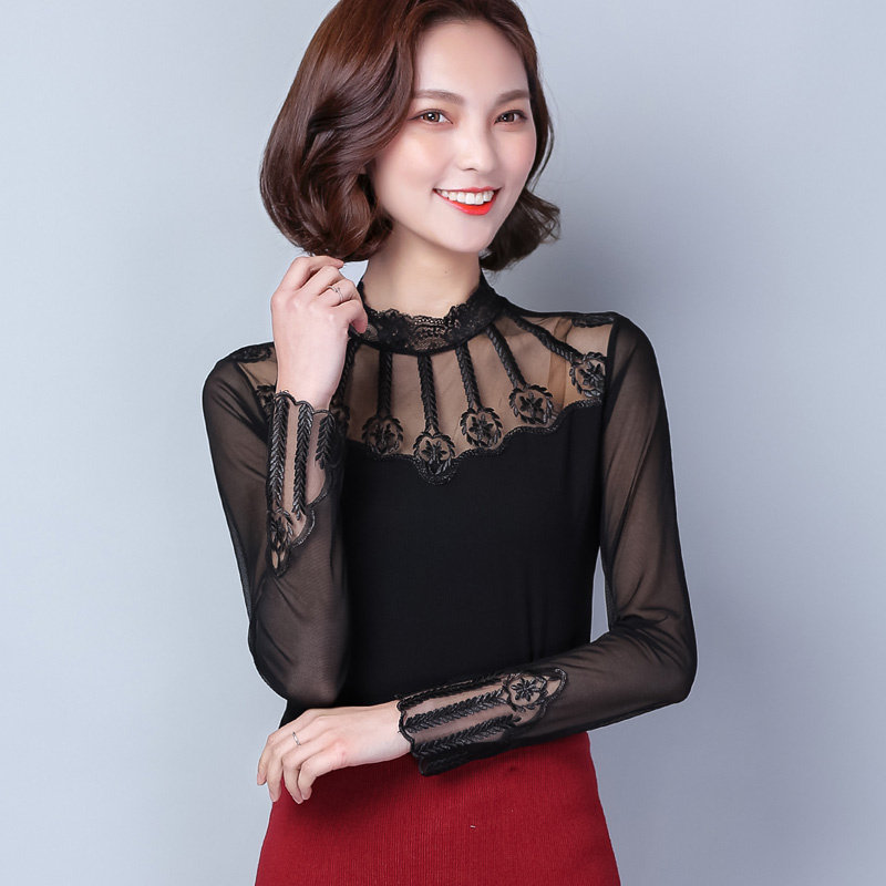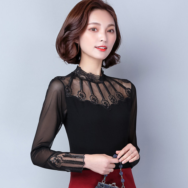 Черный цветной кружевной шелковый приятный телу осенний лонгслив, коллекция 2022, облегающий крой
