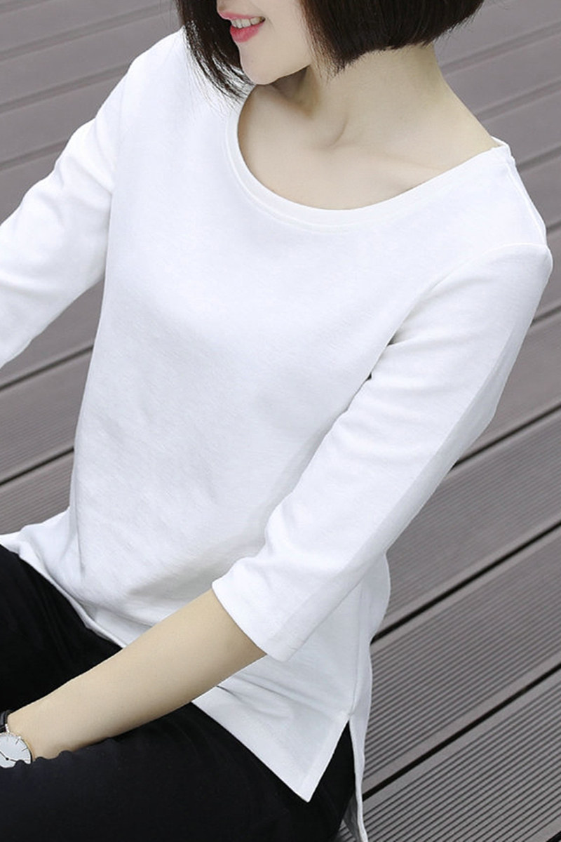Белый осенний лонгслив с круглым воротником, базовая приятная телу хлопковая футболка, цвет, оверсайз