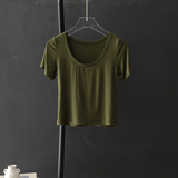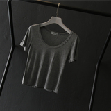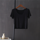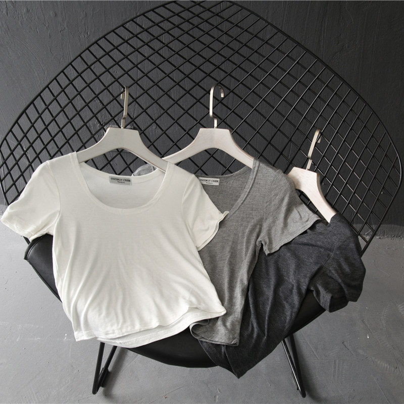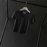 Короткая приталенная футболка, в обтяжку, короткий рукав, высокая талия