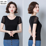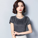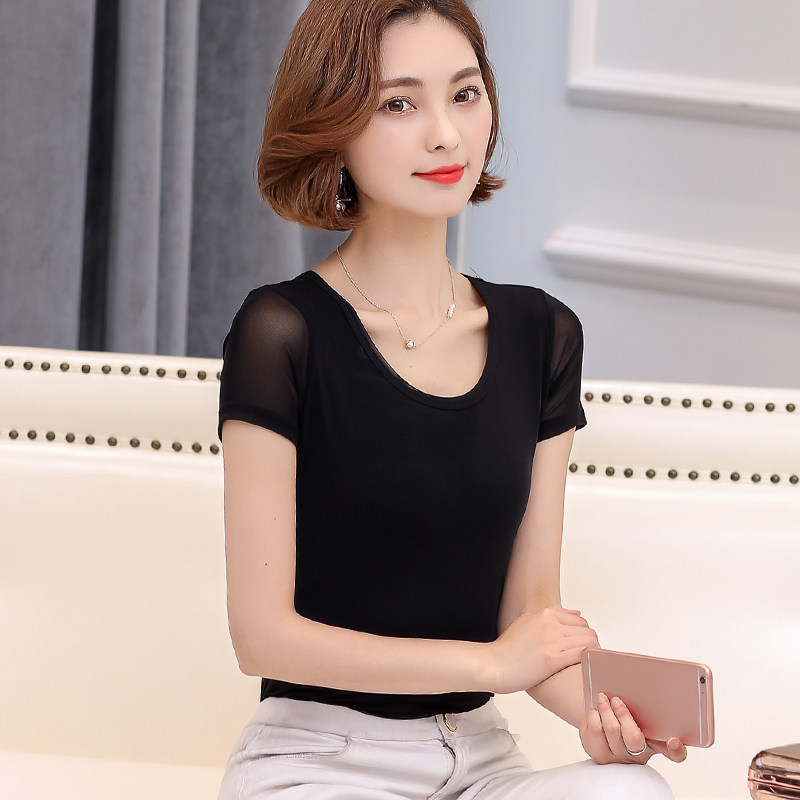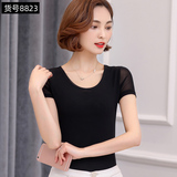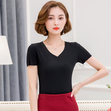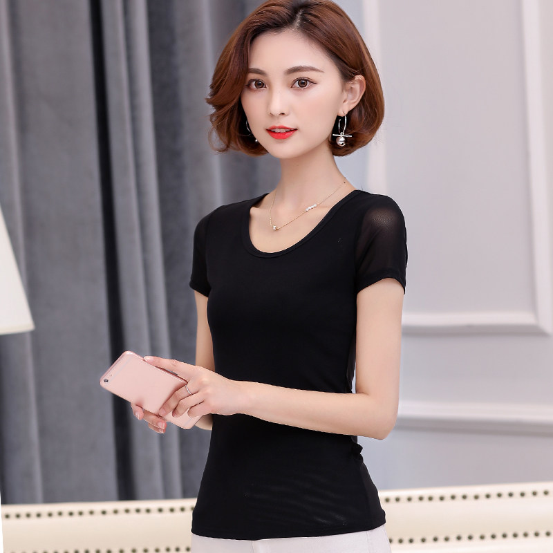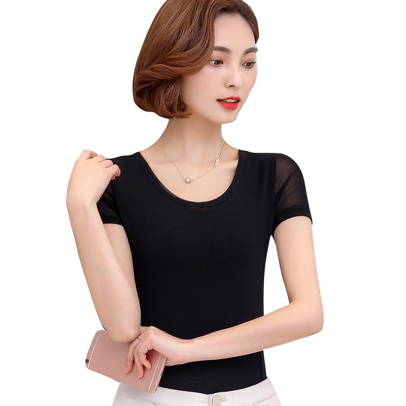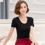 Летняя однотонная приталенная базовая приятная телу короткая футболка с коротким рукавом, большой размер
