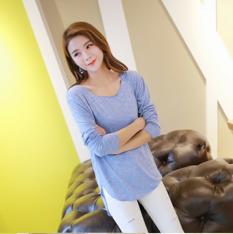 Летний бамбуковый хлопковый лонгслив, свободный крой, ассиметричный крой, в корейском стиле