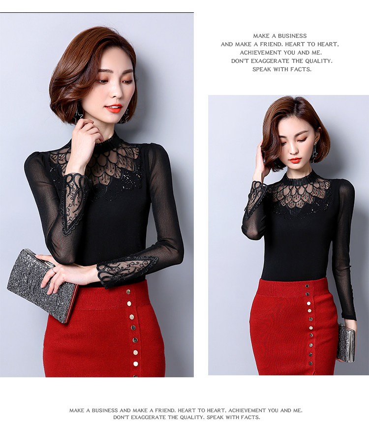 Базовый приятный телу осенний тонкий лонгслив, кружевная футболка, премиум класс