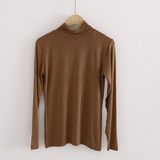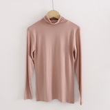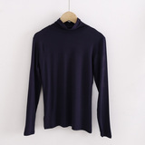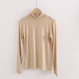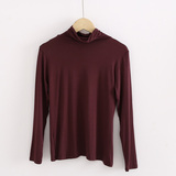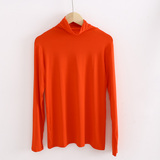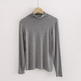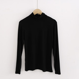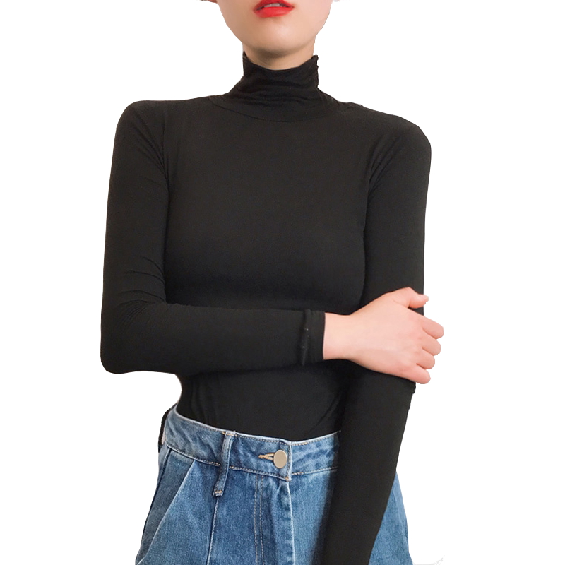 Демисезонный цветной лонгслив, черная базовая приятная телу футболка, в корейском стиле, облегающий крой, высокий воротник