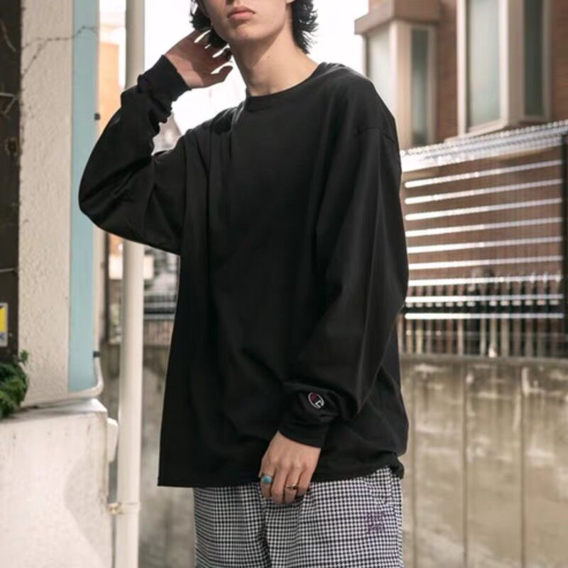 Хлопковая осенняя базовая футболка для отдыха подходит для мужчин и женщин, лонгслив, для влюбленных