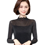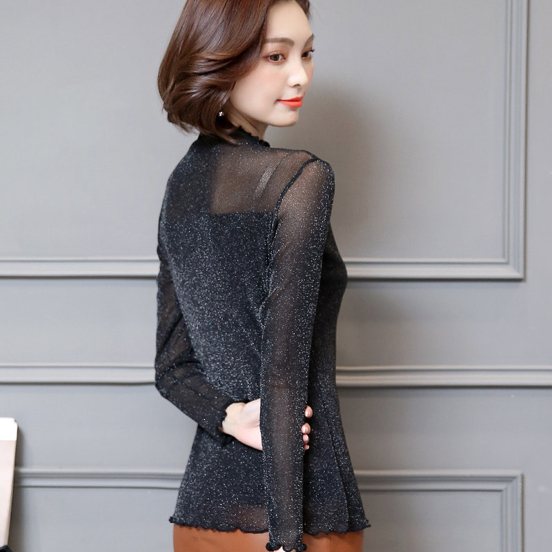 Базовый приятный телу осенний тонкий лонгслив, коллекция 2022, высокий воротник, в западном стиле