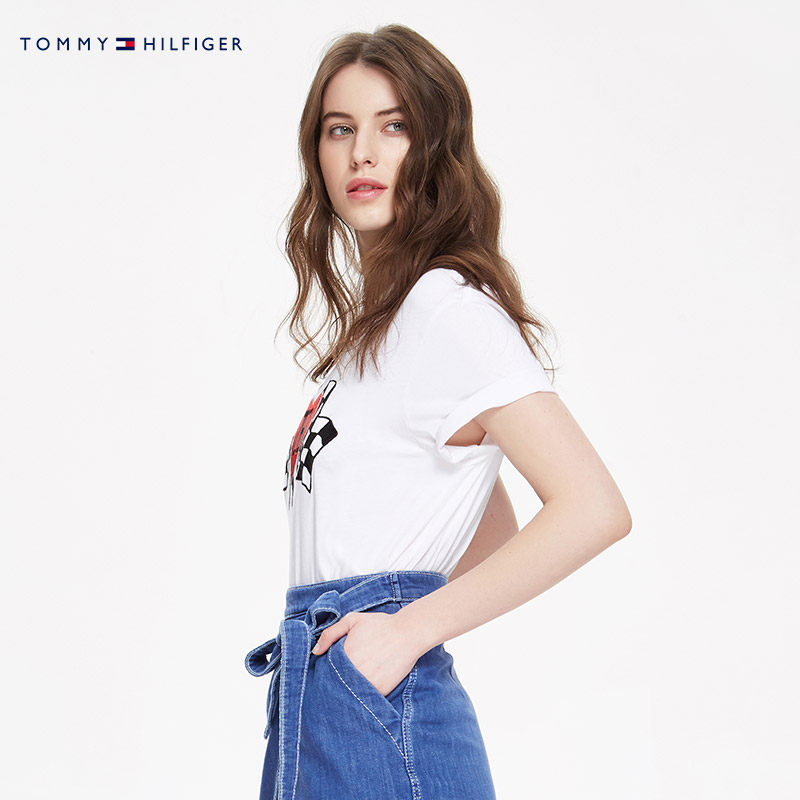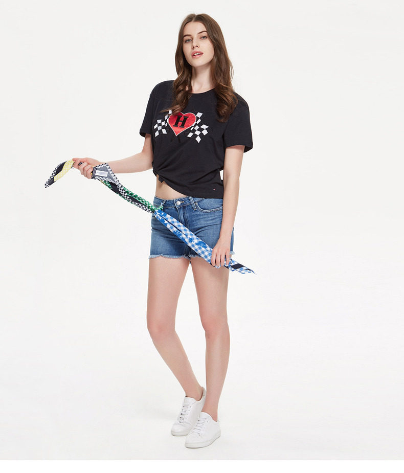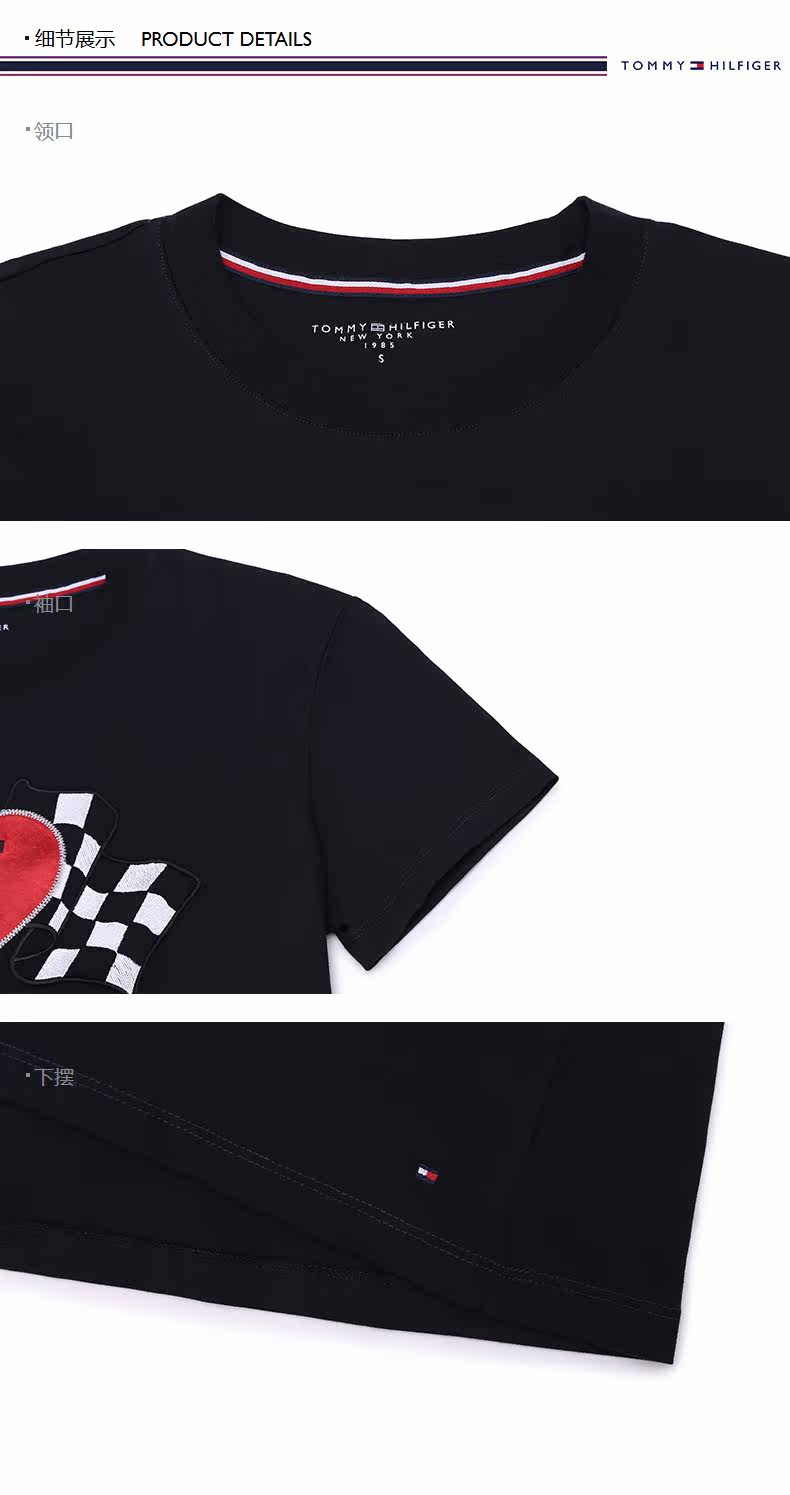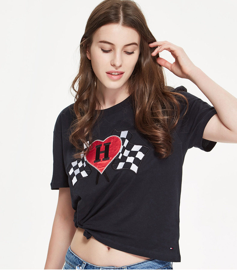 TOMMY HILFIGER Женская одежда весенняя черная футболка с короткими рукавами