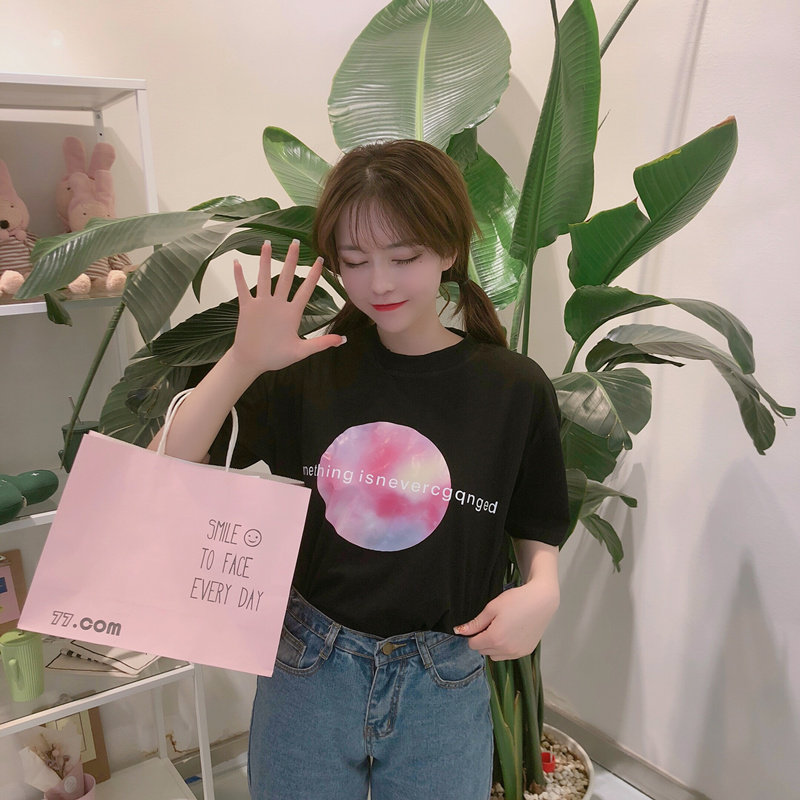 Летняя одежда для влюбленных, базовая футболка для школьников, в корейском стиле, свободный крой