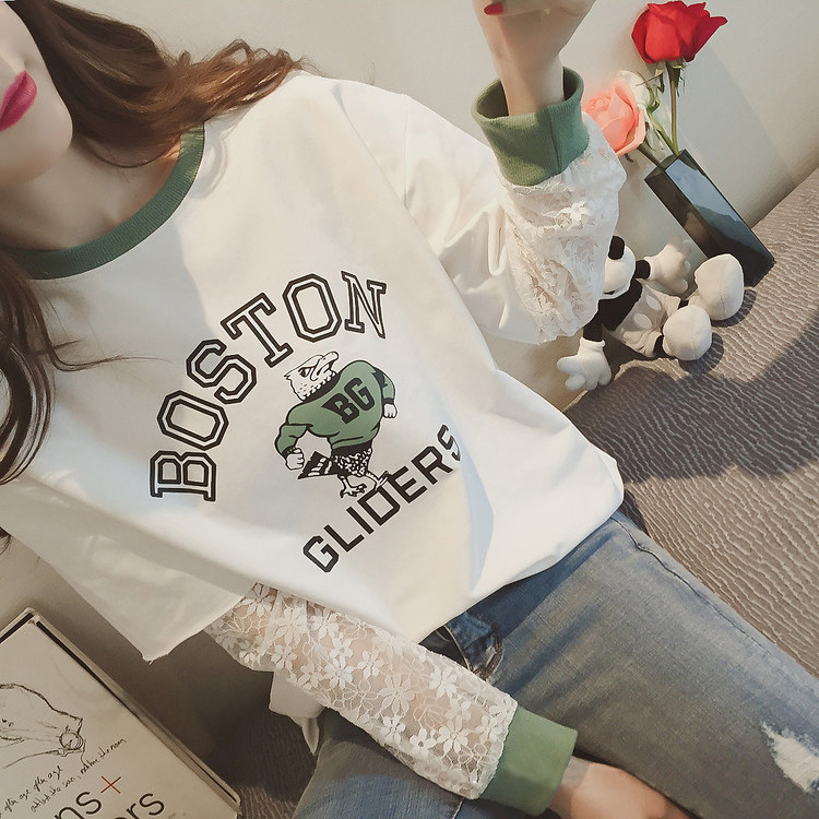 Кружевная футболка, весенний лонгслив, универсальный базовый приятный телу комплект, коллекция 2021, в корейском стиле