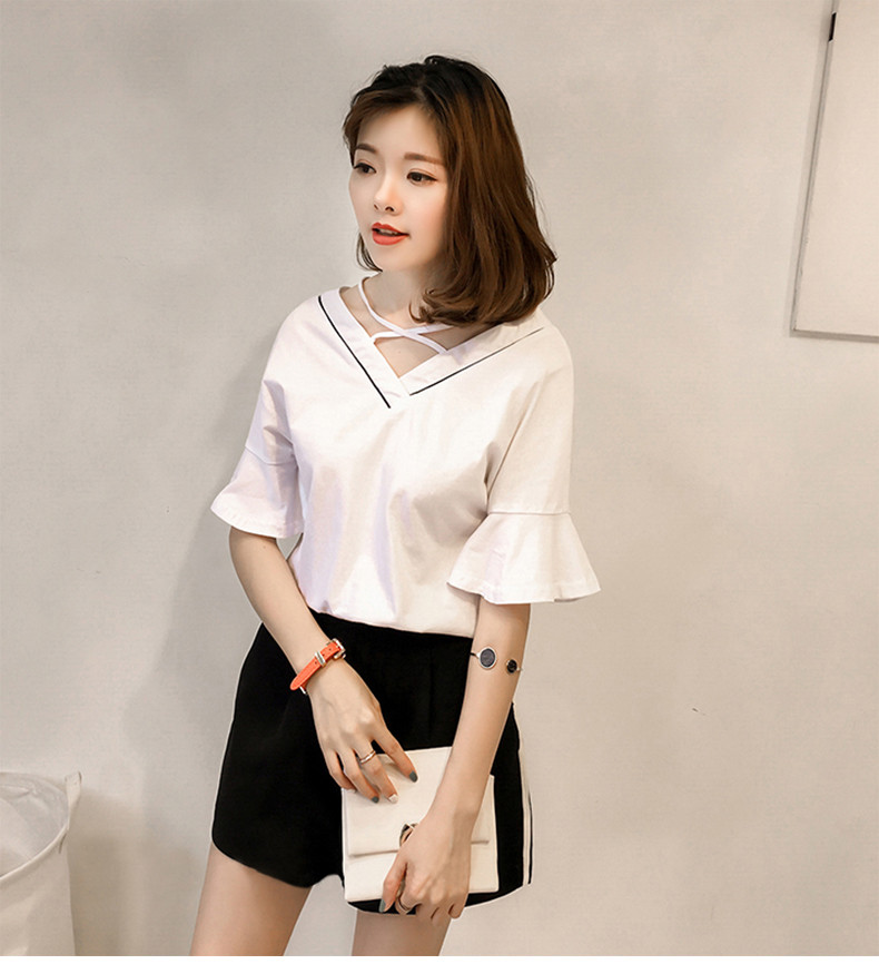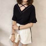 Летняя сексуальная милая футболка с коротким рукавом, коллекция 2021, популярно в интернете, V-образный вырез, с открытой спиной