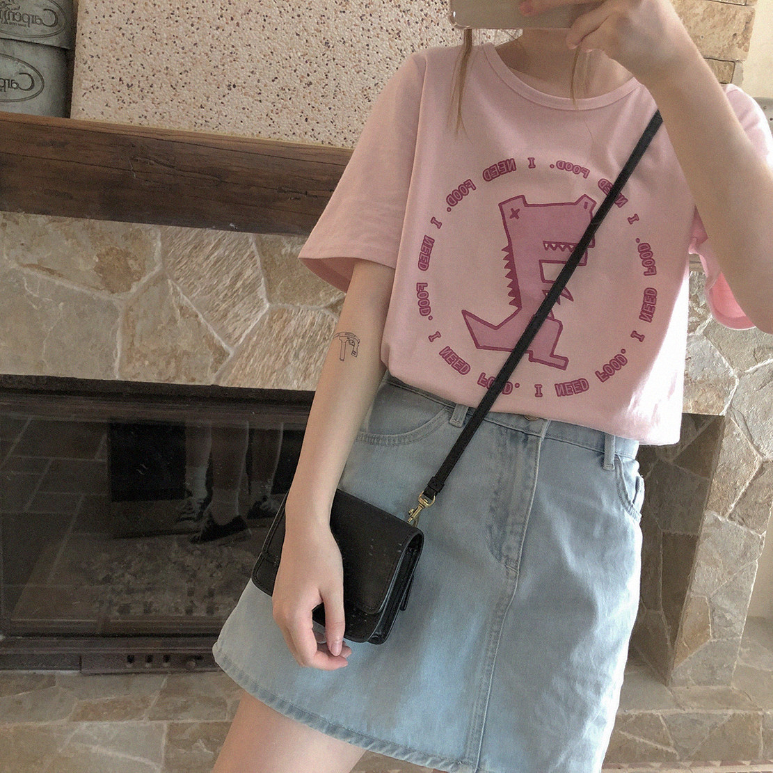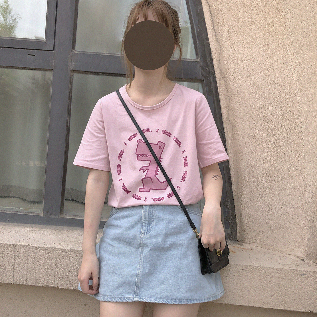 Динозавр, милая розовая футболка с коротким рукавом