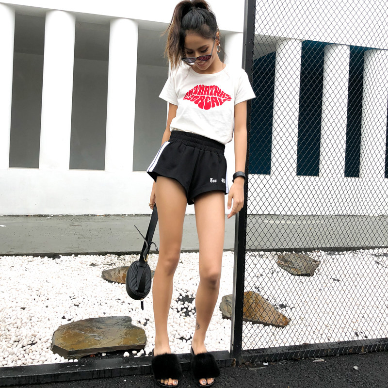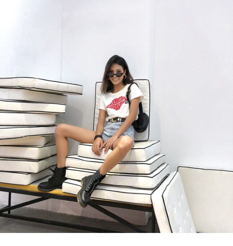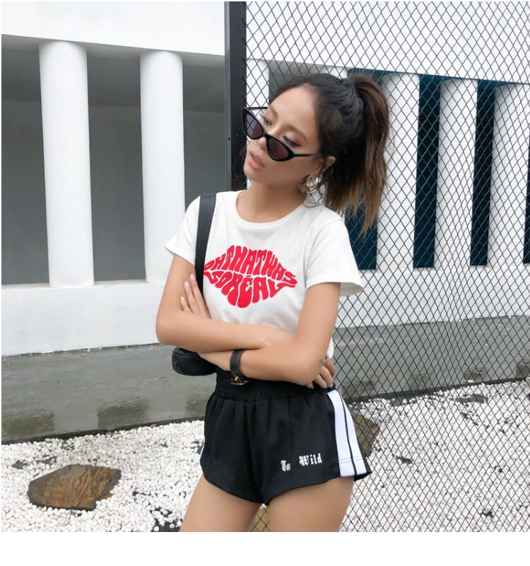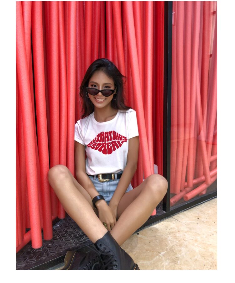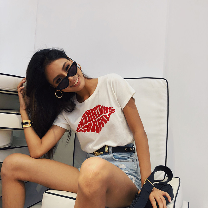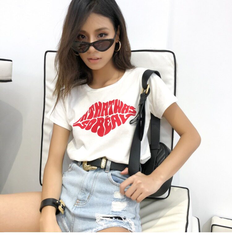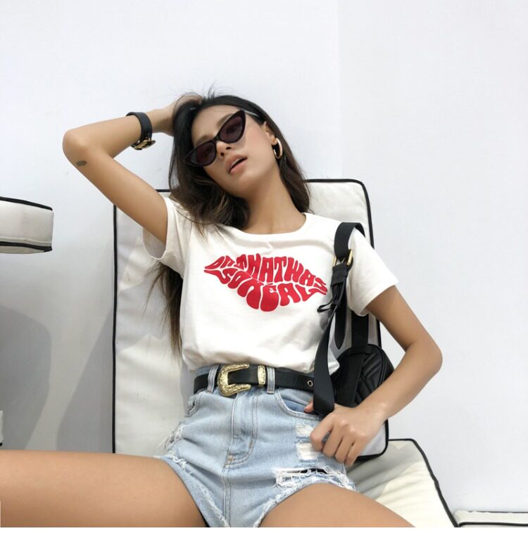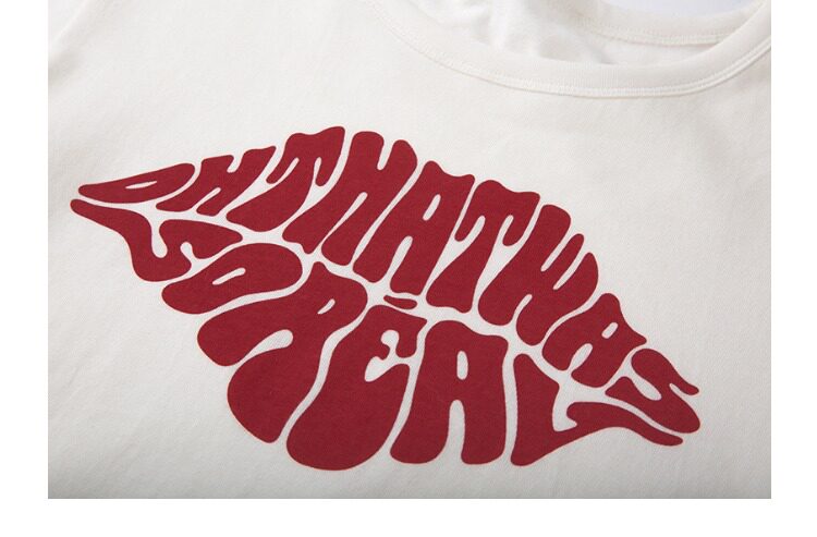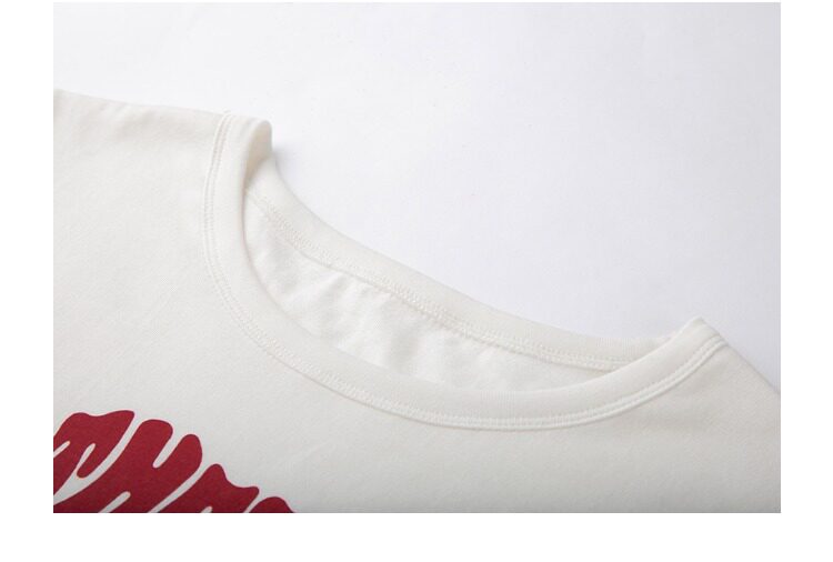 Красная кремовая хлопковая футболка с круглым воротником, европейский стиль, с рукавом