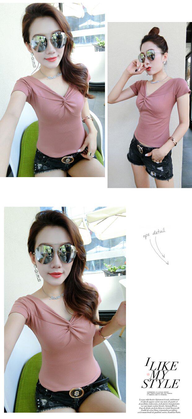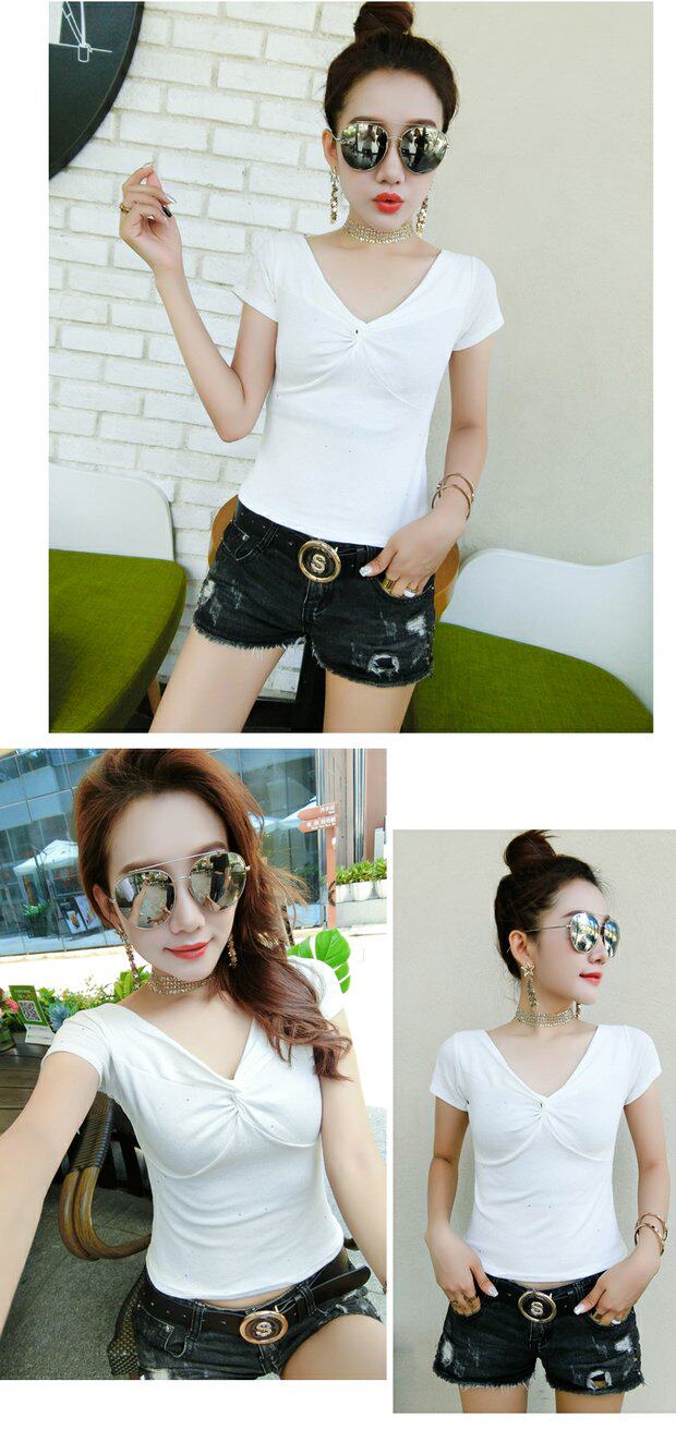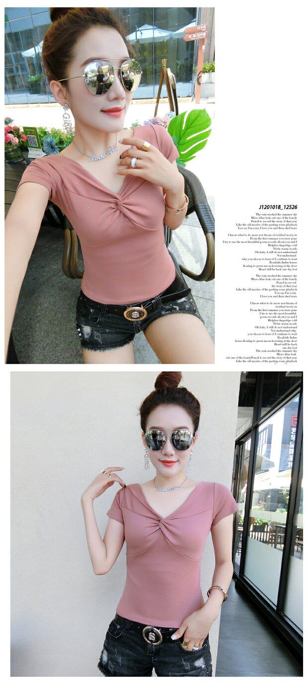 Tide, летняя короткая хлопковая футболка с коротким рукавом, в корейском стиле, облегающий крой, короткий рукав, V-образный вырез