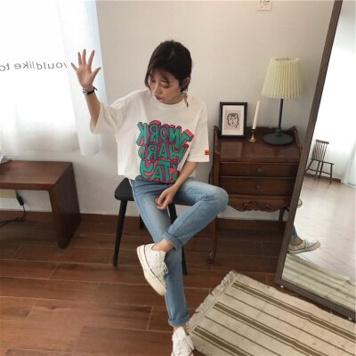 Футболка для школьников, короткий рукав, коллекция 2021, в корейском стиле, оверсайз