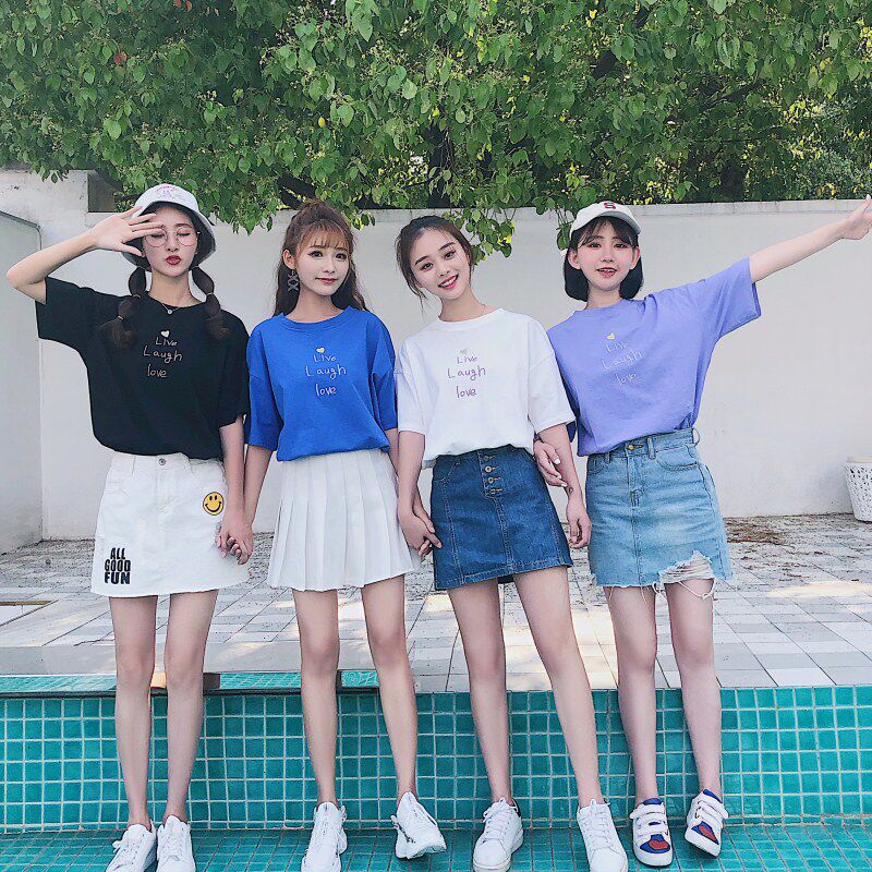 Летняя сиреневая футболка для школьников, сезон 2021, короткий рукав, оверсайз, с вышивкой