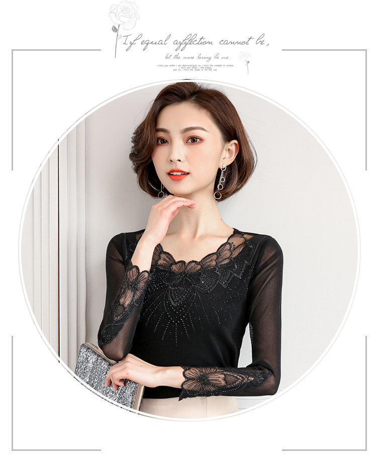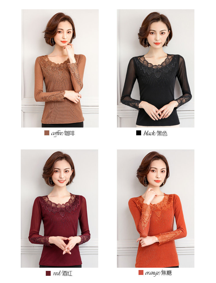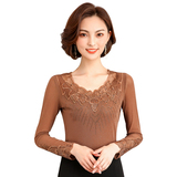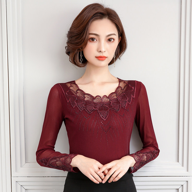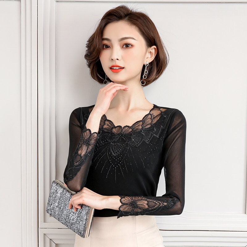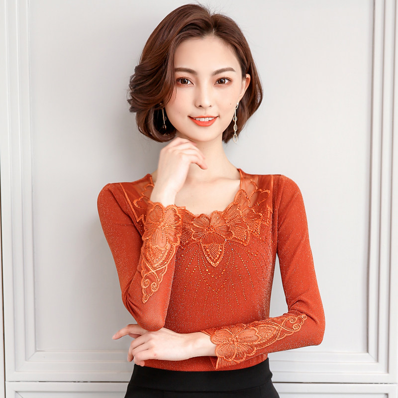 Кружевной шелковый приятный телу осенний лонгслив, футболка, коллекция 2022, в корейском стиле, в западном стиле