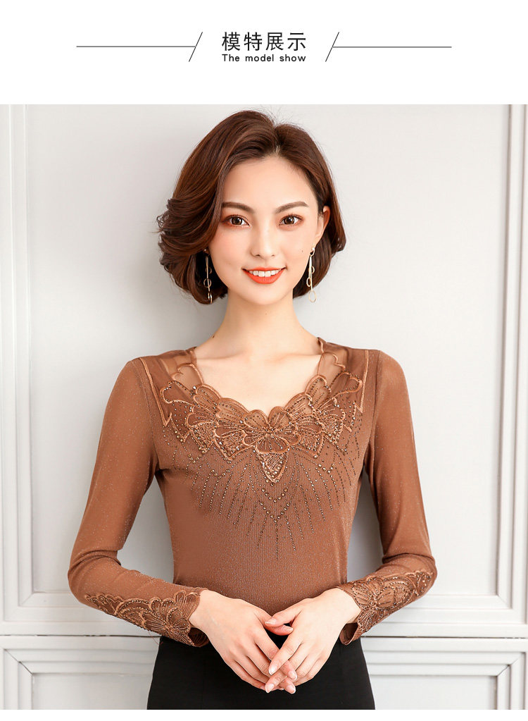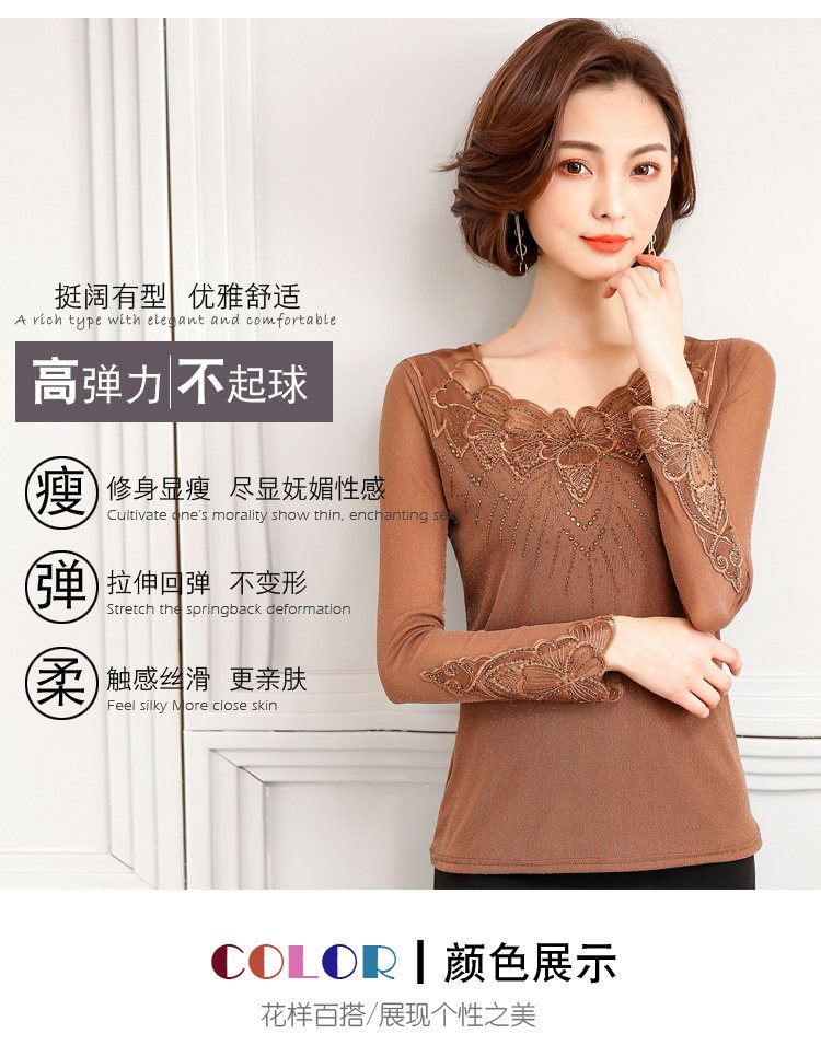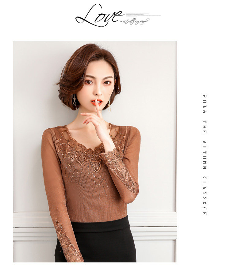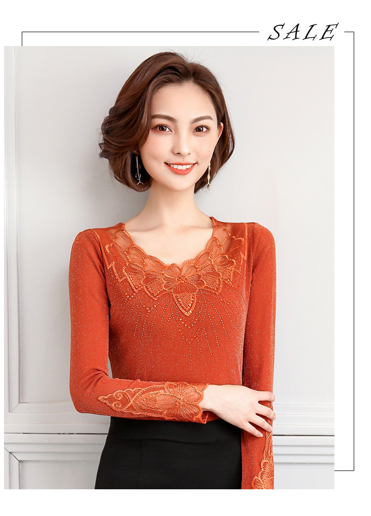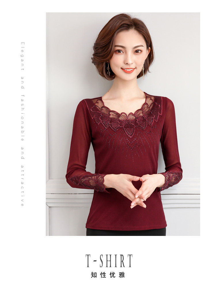 Кружевной шелковый приятный телу осенний лонгслив, футболка, коллекция 2022, в корейском стиле, в западном стиле