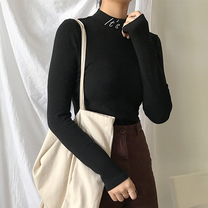 Весенний осенний демисезонный базовый приятный телу лонгслив, 2023 года, высокий воротник, в западном стиле
