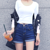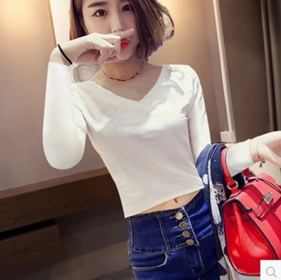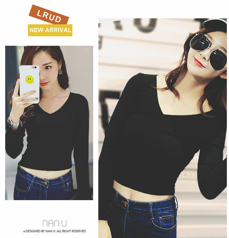 Короткий лонгслив, черная приятная телу футболка, демисезонное термобелье, сексуальный приталенный ростомер, в корейском стиле, в обтяжку